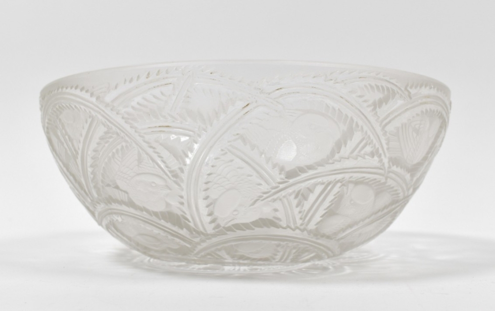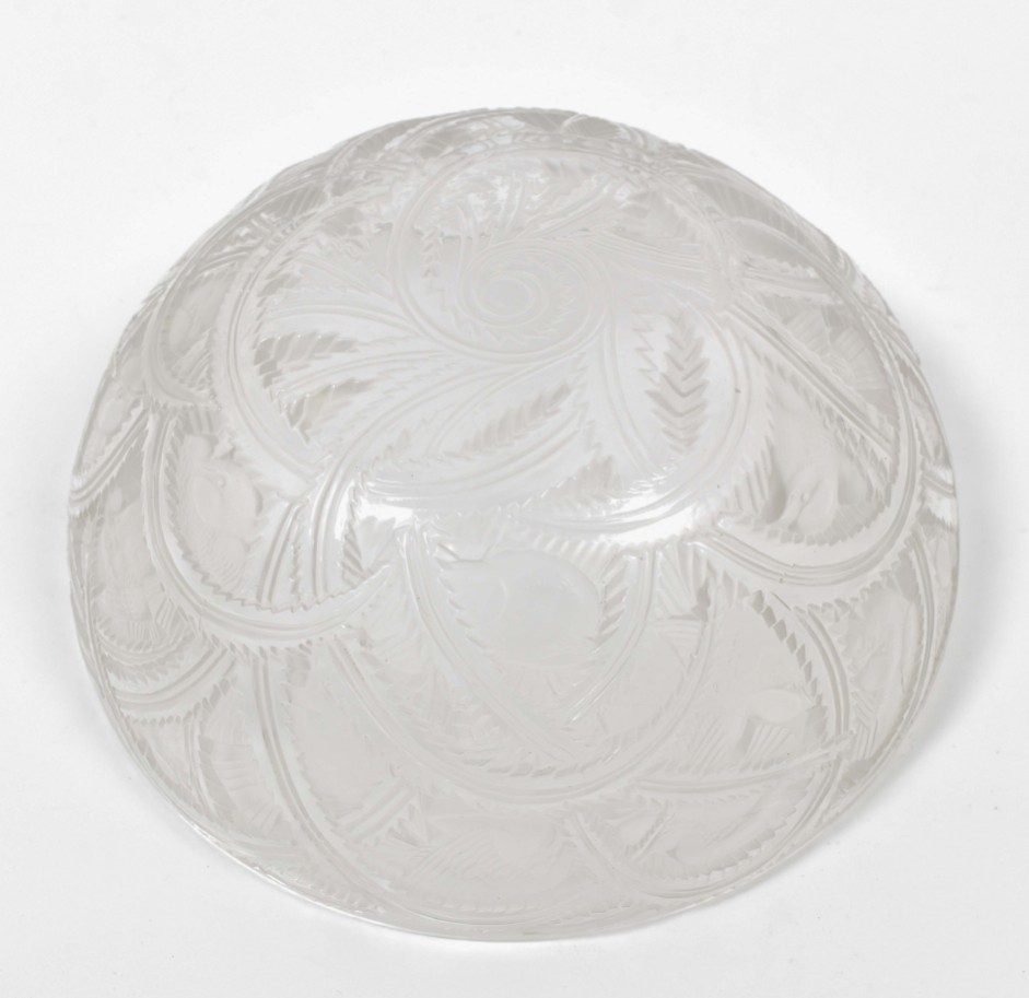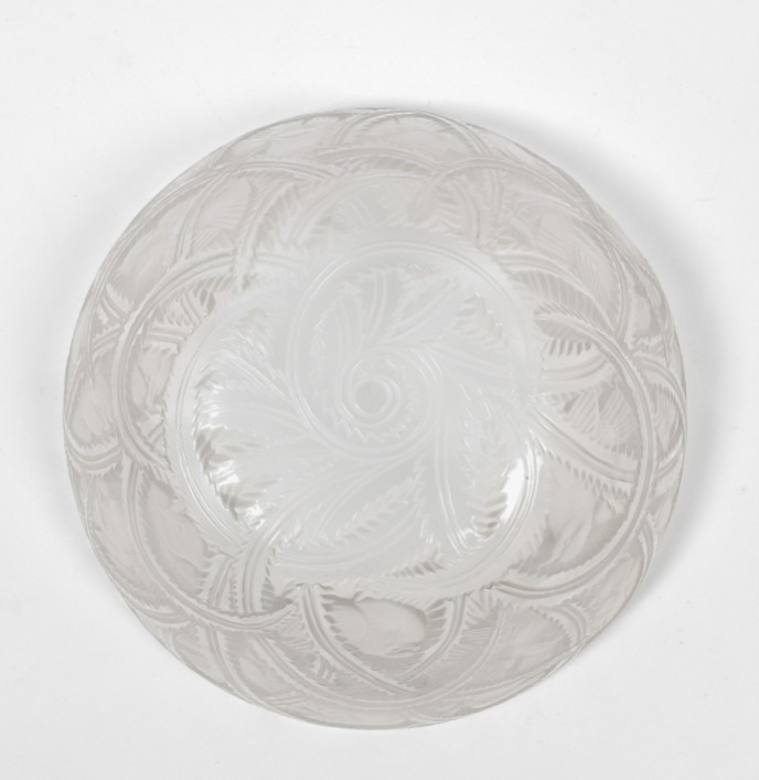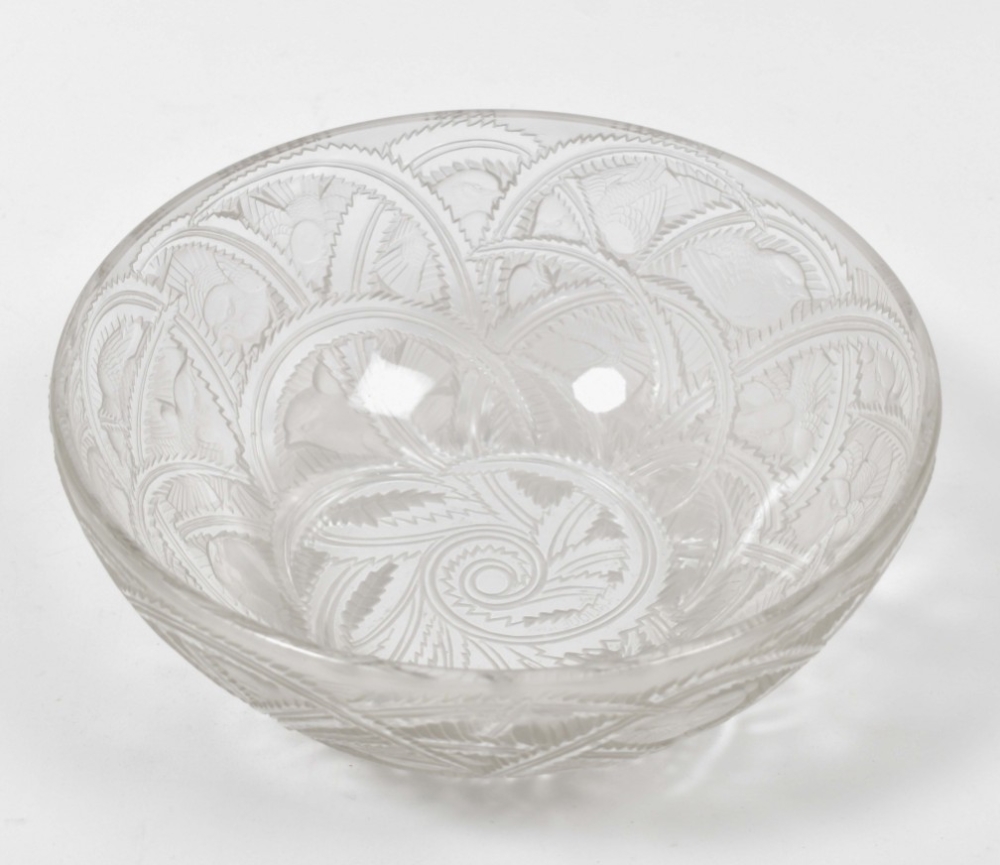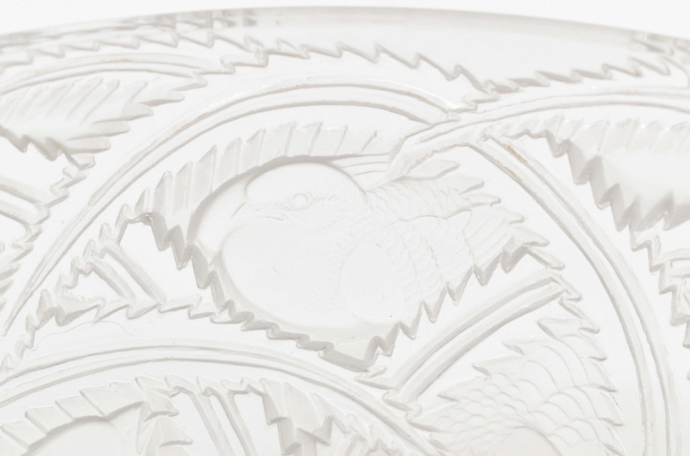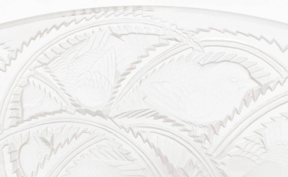 Glass Pinsons bird bowl. Base signed Lalique. Diameter 23.5 cm.