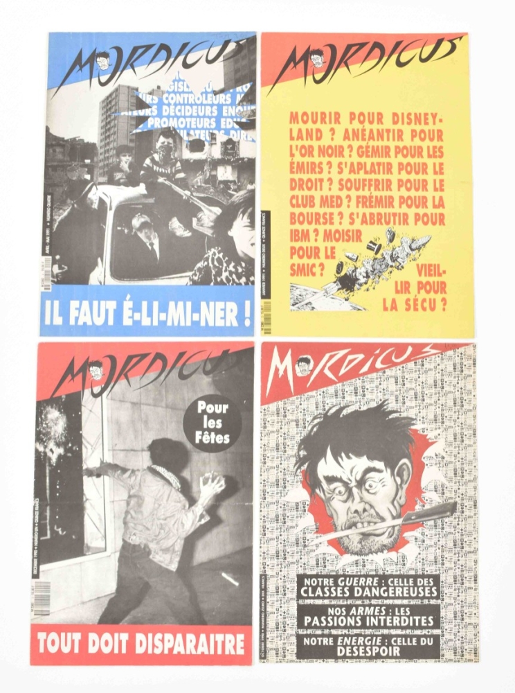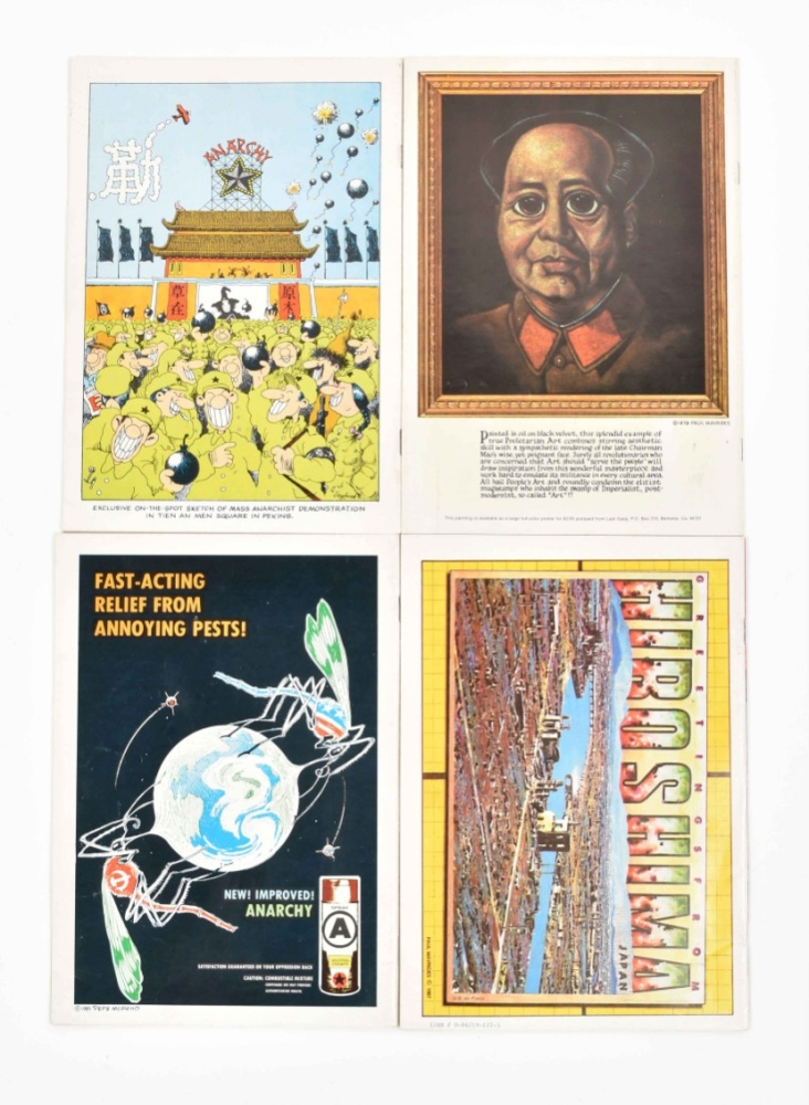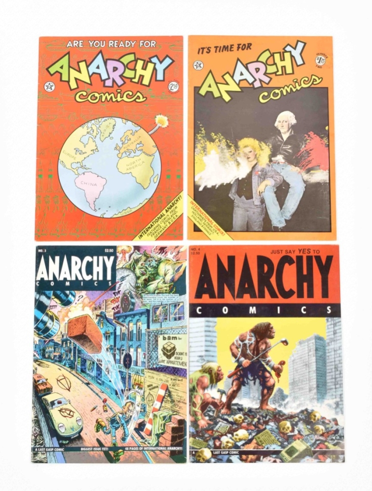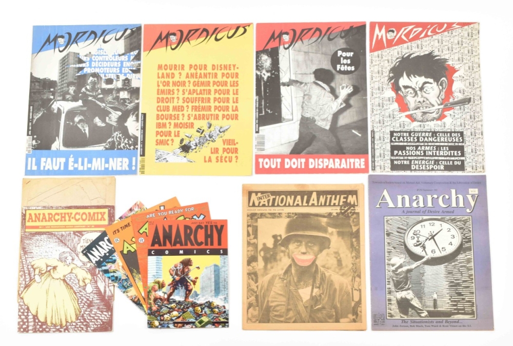 (1) Anarchy Comics Nos.1-4, 1978 - 1987. Complete run of the underground comic that melded anarchist politics with a punk sensibility. Edited by Jay Kinney for Last Gasp, Berkeley. In fine condition. (2) Four issues of Mordicus, French anarchist magazine on tabloid format, 13 numbers were issued between 1990-1994. Published by Les Mordicants, a group of militants and writers associated with anarchist and post Situationist ideas. Includes No. 0, 1, 2 and 4.