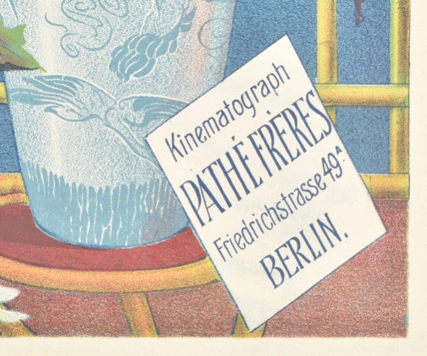 Kinematograph Pathé Frères, Friedrichstrasse 49A, Berlin. Friedländer, Hamburg, 1906. 96 x 71 cm. Lith. no. 3670.
