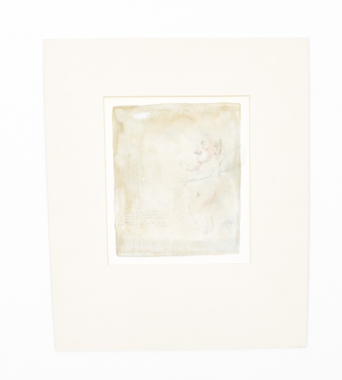 Drawing in col., black and white chalk on thick cloth, 26 x 17 cm, signed and dated "72" in black chalk, titled in pencil verso, under passepartout.