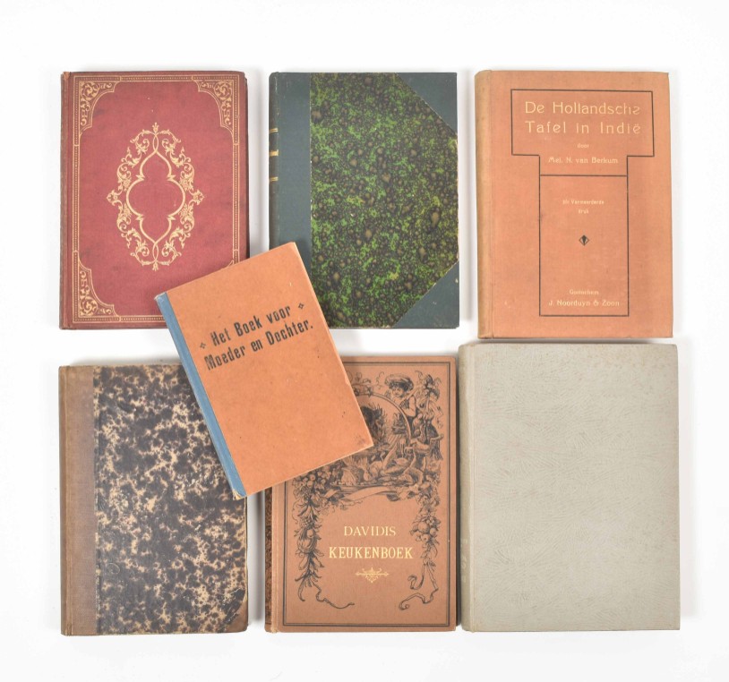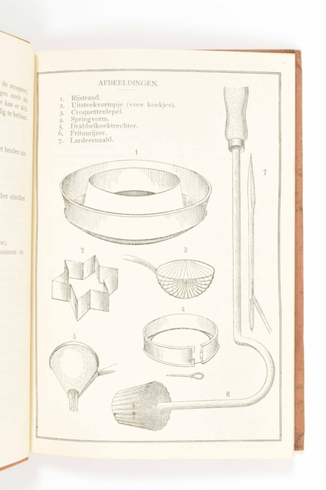 Naar het Duitsch. Haarlem, Bohn, 1887. 10th ed. (2) A.C. Manden. Recepten van de Haagsche kookschool. 's-Grav., Van Cleef, 1895. (3) N. van Berkum. De Hollandsche tafel in Indië. Gorinchem, Noorduyn, 1913. 3d ed. (4) Elsje Visser, De bekwame huishoudster. Handleiding voor jonge dochters uit den aanzienlijken en en burgerstand. Leiden, Van Goor, 1868. (5). Karl Rusz. Nieuw geïllustreerd handboek voor meisjes en vrouwen. Naar het Duitsch. Dordrecht, 1868.