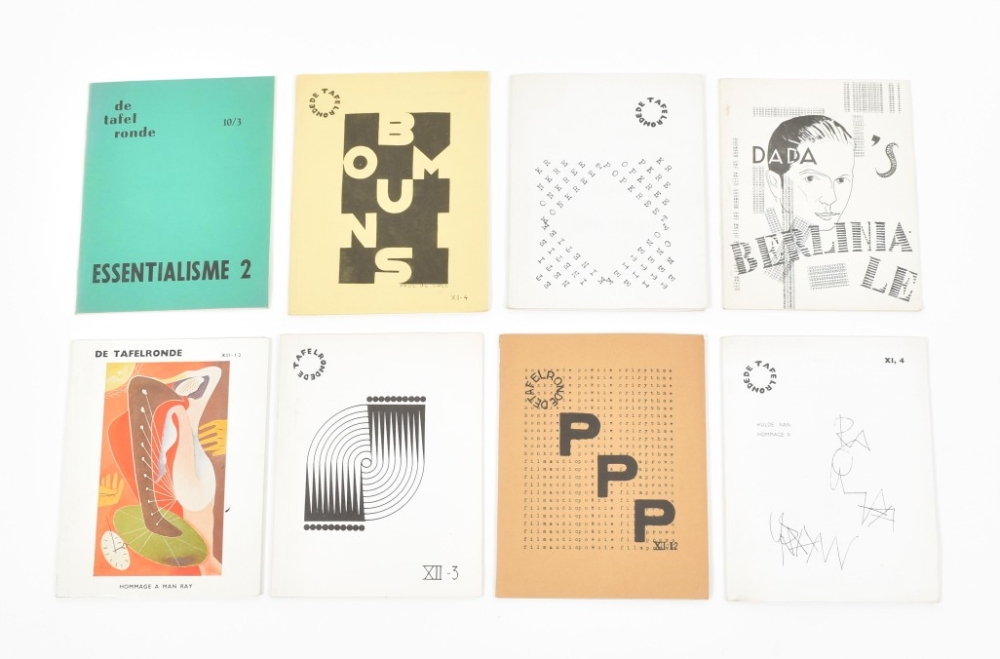 Antwerp, Paul de Vree, 1966-1968. De Tafelronde was a long-running periodical (1955-1982) focused on experimental and concrete poetry founded and edited by Belgian artist Paul de Vree. The editorial team consisted of Henri Chopin, Freddy de Vree, Frans van der Linden et al. Regular contributors were Ian Hamilton Finlay, Arigo Lora-Totino, Timm Ulrichs, Hans Clavin, Herman de Vries, Alain Arias Misson, Mary Ellen Solt, Herman Damen. Offered in this lot are 8 issues, all 23 x 16 cm, containing a variable number of pages.