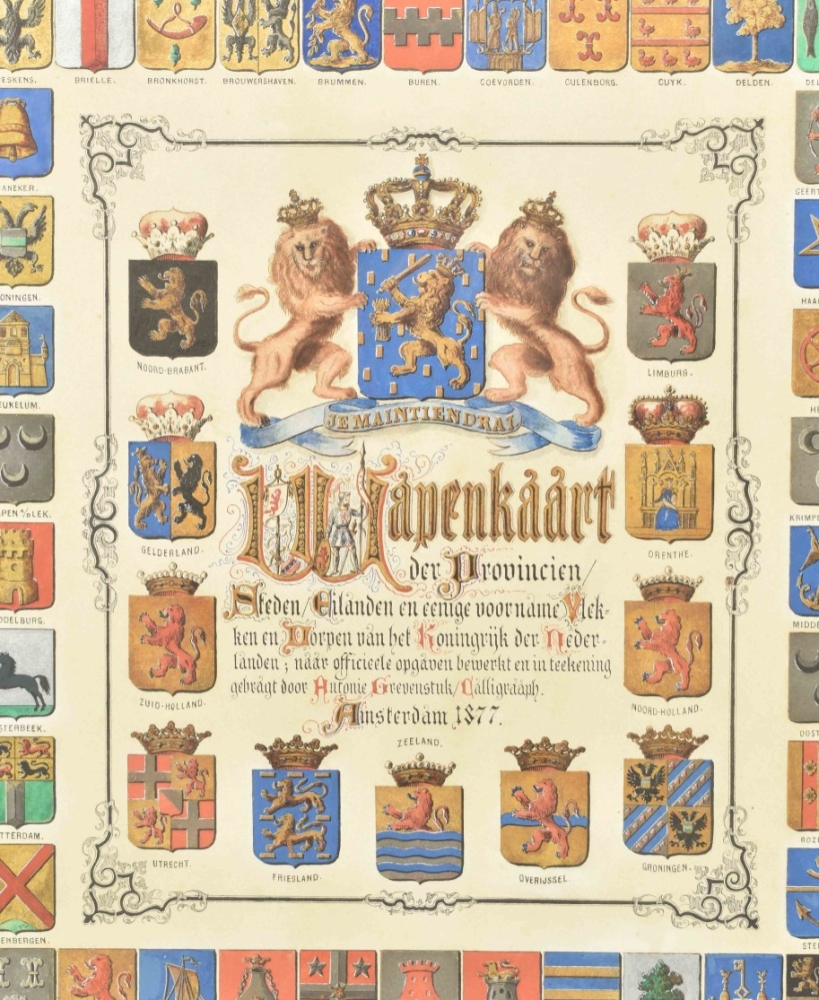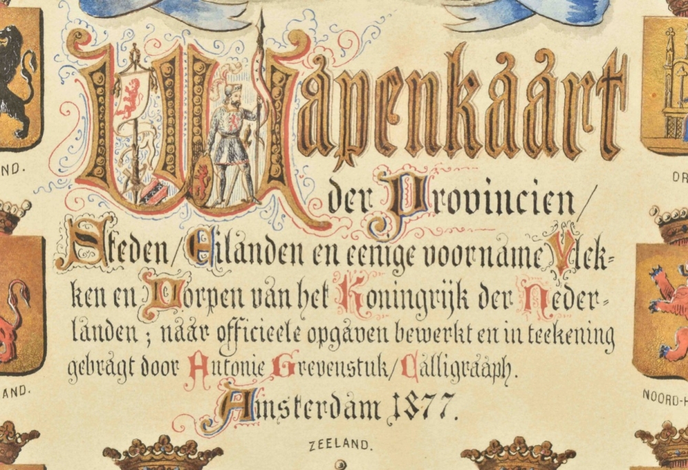 [Calligraphy] Antonie Grevenstuk (1829-1896). "Wapenkaart der provincien, steden, eilanden