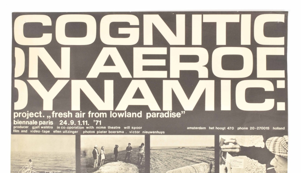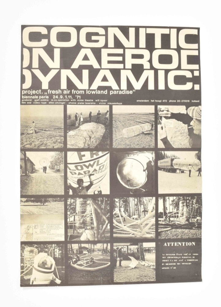 Biennale Paris, 24.9.1.11. '71. Producer Gjald Walstra in co-operation with mime theatre Will Spoor, film and video-tape Ellen Uitzinger, photos Pieter Boersma and Victor Nieuwenhuys. Amsterdam, 1971. Poster, 63 x 44 cm.
