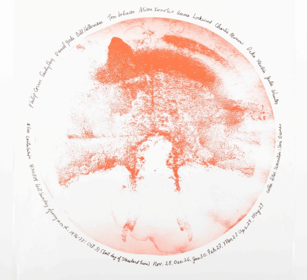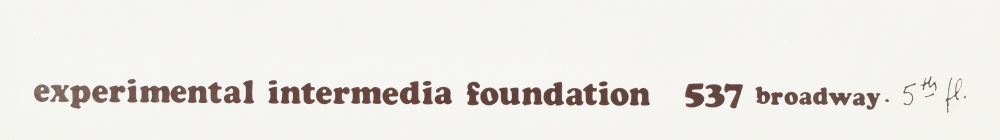 New York, Experimental Intermedia Foundation, 1976/77. Offset print, 44.5 x 29.3 cm. Poster announcement for a groupshow featuring Corner, Alison Knowles, Daniel Goode et al. Slight imperfection at top margin, else a good copy.