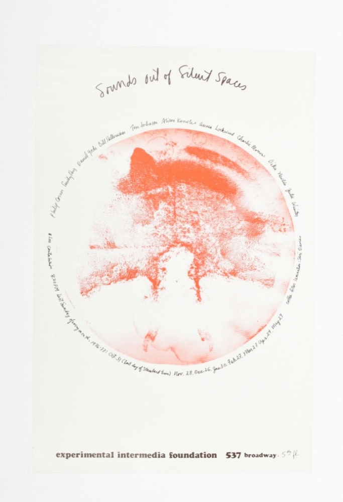 In 1972, Corner and Julie Winter started Sounds Out Of Silent Spaces, a music ritual collective that met twice monthly at the Experimental Intermedia Foundation. The group, which included Alison Knowles, Daniel Goode, Charlie Morrow and William Hellermann at various times, would begin each evening with improvisations on found objects and instruments, moving into drone chanting followed by a silent meditation and ending with dance/rhythm based pieces.
