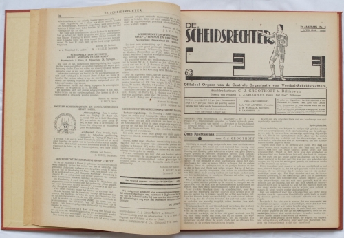 9th year of publication. Published by den Nederlandschen Voetbal-bond. 274 (10) p. Stitched, good copy. + De Scheidsrechter. 8th year of pub., no. 18, Jan. 1942 up to and including 9th year of pub. no. 16 Dec. 1942. Bound in blind binding.