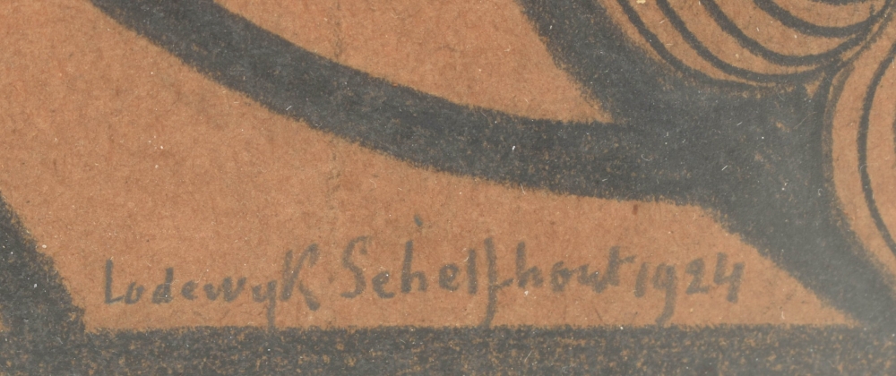 Drawing in black crayon on brownish paper, with some watercolour, 49 x 40 cm, signed and dated 1924 in pencil, in contemp. frame.