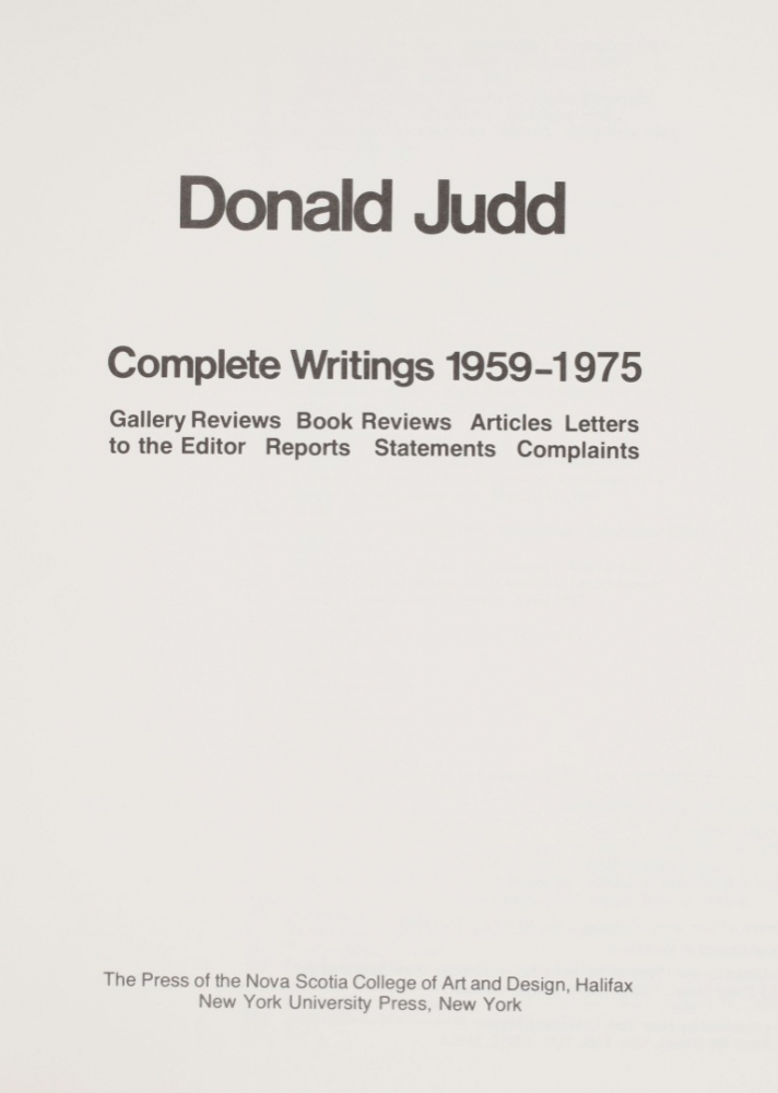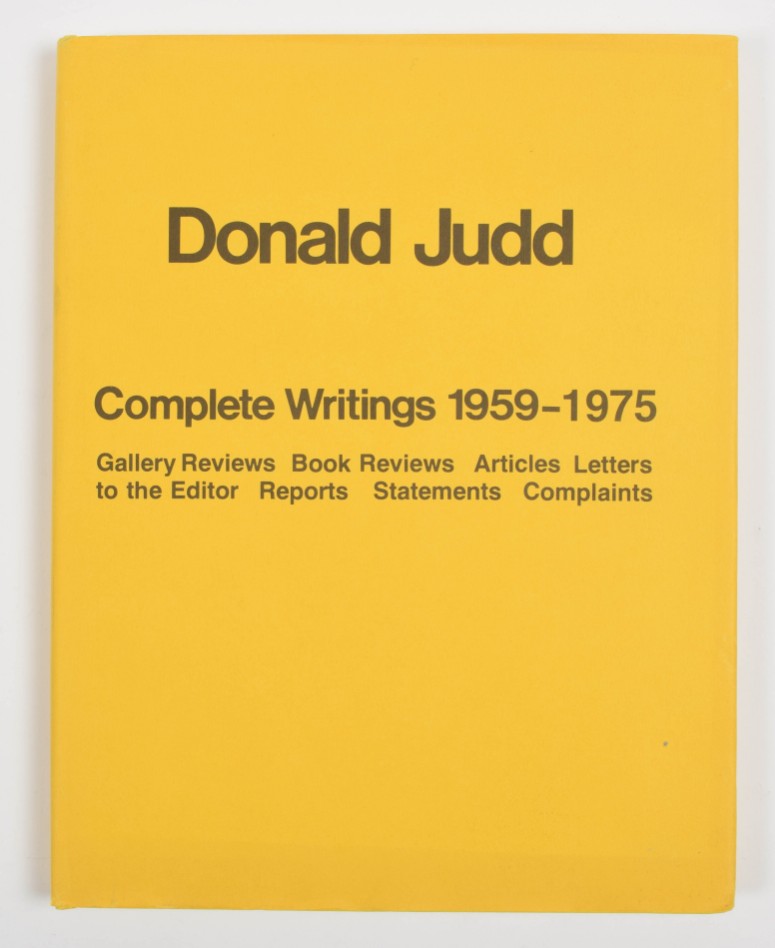 First edition printing containing gallery reviews, book reviews, articles, letters to the editor, complaints, reports and statements on Judd's work. Well preserved copy with minimal wear to covers.