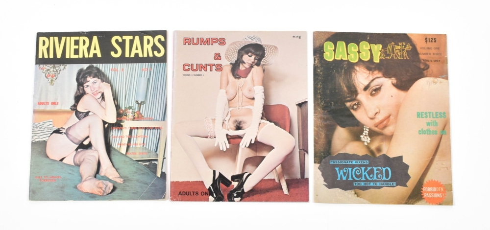 Come Home Tonite. Vol. 1 no. 1. Special Hippie Section. Ca. 1967. With: Vol. 1, no. 2. (=all published?) -and 31 more similar magazines with titles like: Spanky, Teenage Playmates, Riviera Stars, Rumps & Cunts, Sassy, Siren Princess, Rapture and Rendezvous with pleasure. Mostly published in the 1960s, partly 1970s.