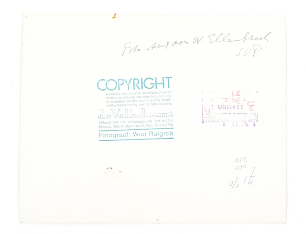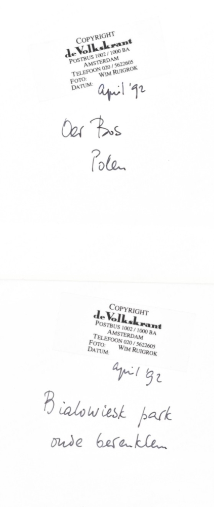 'Voel u Vorstelijk', Amsterdam 1975. Gelatin silver print, 20 x 25 cm. Photographers stamp on verso. (2) Two gelatin silver prints 'Oerbos Polen' each 30 x 24 cm. Photographers handwritten titles and Volkskrant photographers label on verso -and 3 more from a series on renovated houses in former Eastern Germany, each 30 x 40 cm. Added: Wim Ruigrok. Amsterdam stad in verandering. Text Willem Ellenbroek, photos Wim Ruigrok. Bas Lubberhuizen, 2001.