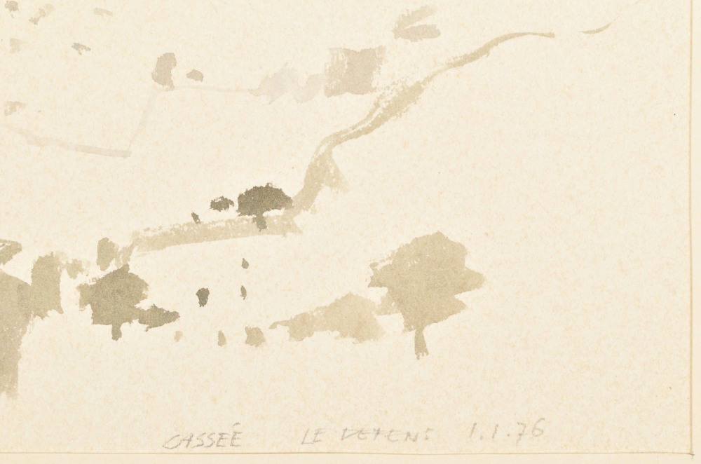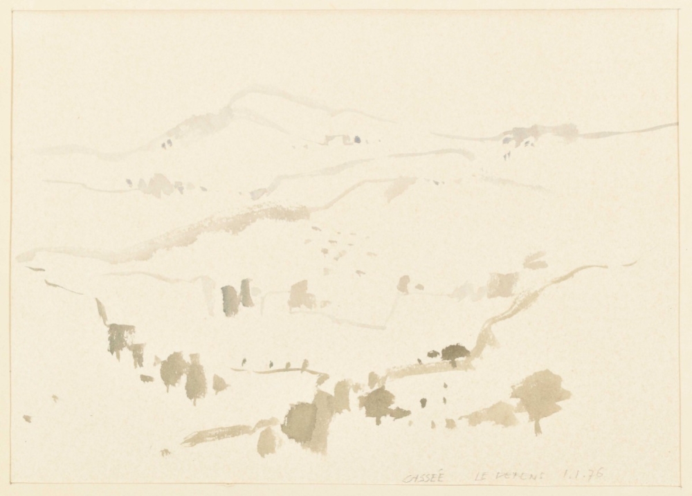 (2) 'Aurel'. Etching and aquatint, 10.5 x 26 cm, signed, titled, dated 1974 and numbered 10/10 in pencil in lower blank margin. Sl. superficial dam. Remnants from former passepartout and some creases in blank margins. -and a watercolour landscape by the same. (total 3)