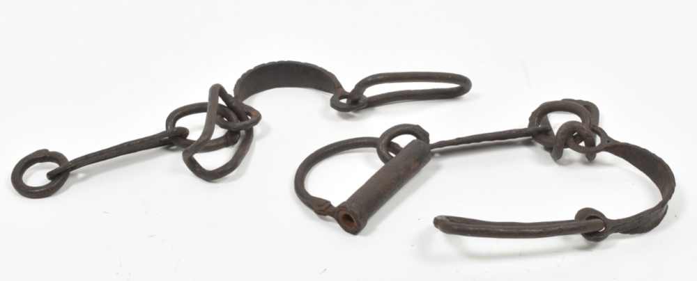 probably 19th cent., consisting of 2 identically shaped sets of several attached parts, one set w. a locking mechanism (without key) preserved.