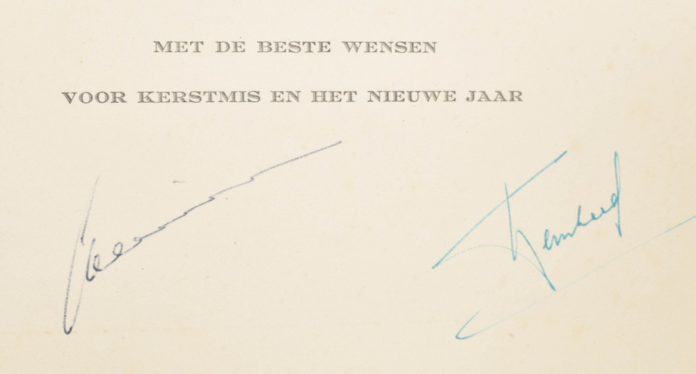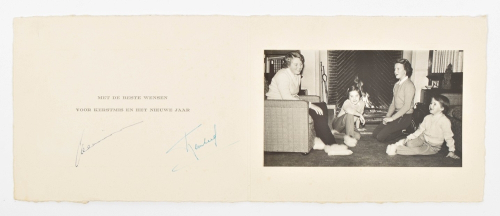 Most of the picture postcards in the albums depict Juliana at various ages (from infancy up to the birth of Beatrix). Also incl. a Christmas card w. mounted photographic group portrait of Beatrix, Irene, Margriet and Christina, signed in pen by Juliana and Bernhard. (total approx. 325 in 3 albums)