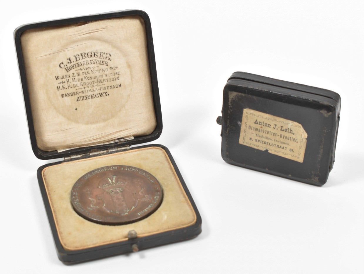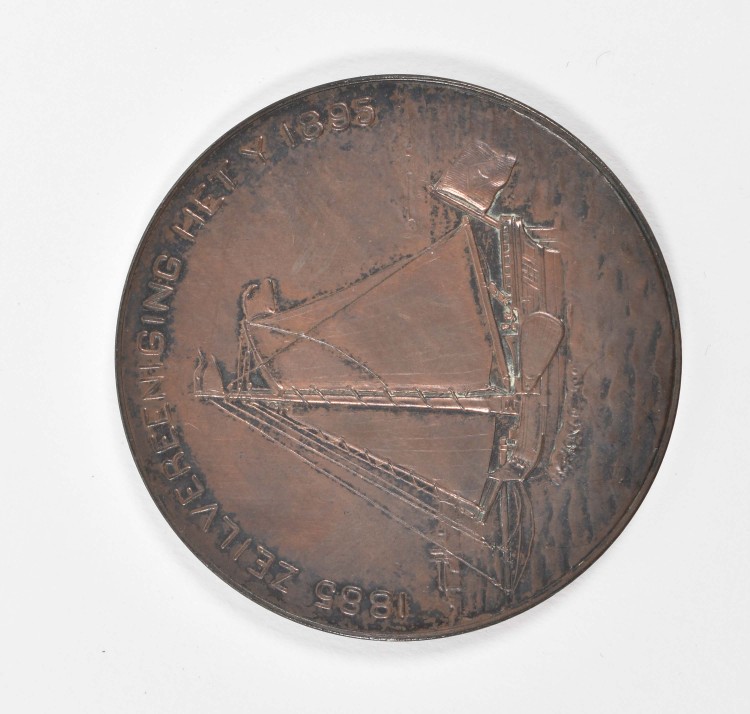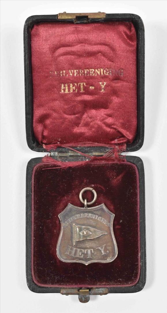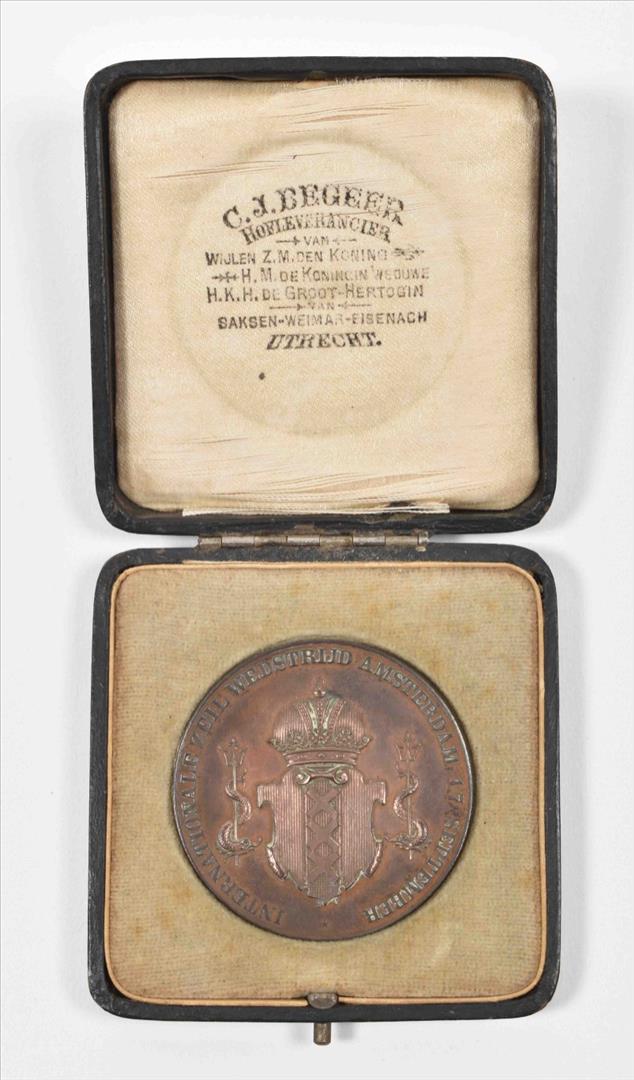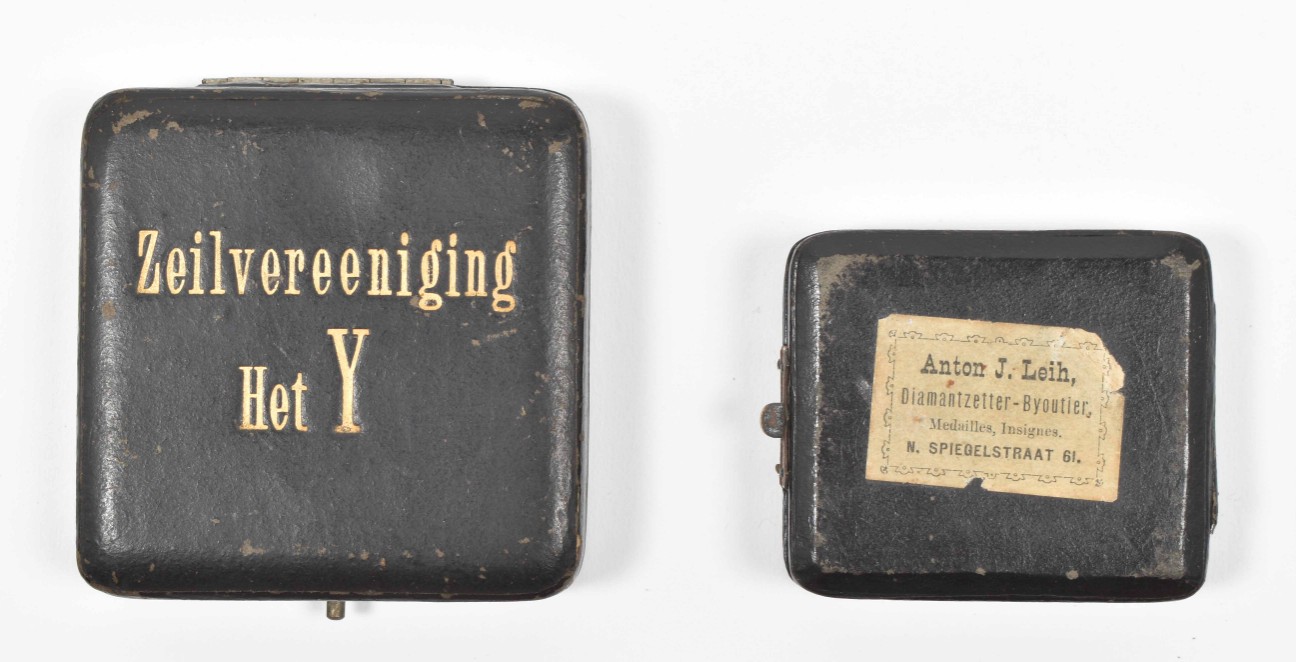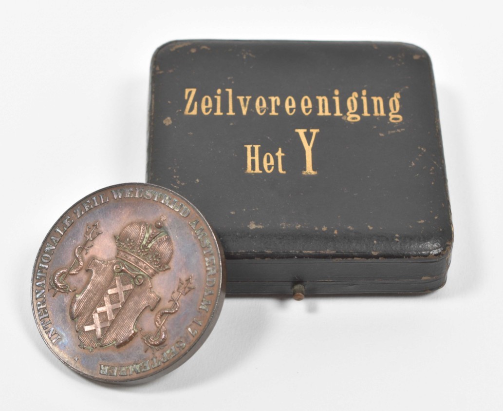 Bronze medal "Internationale zeilwedstrijd Amsterdam 17 september 1895". In orig. gilt titled box, Utrecht, C.J. Begeer. (2) Silver medal from the 2nd prize, "Tjotters 8-7-1894". In orig. box, Amsterdam, J. Leih.