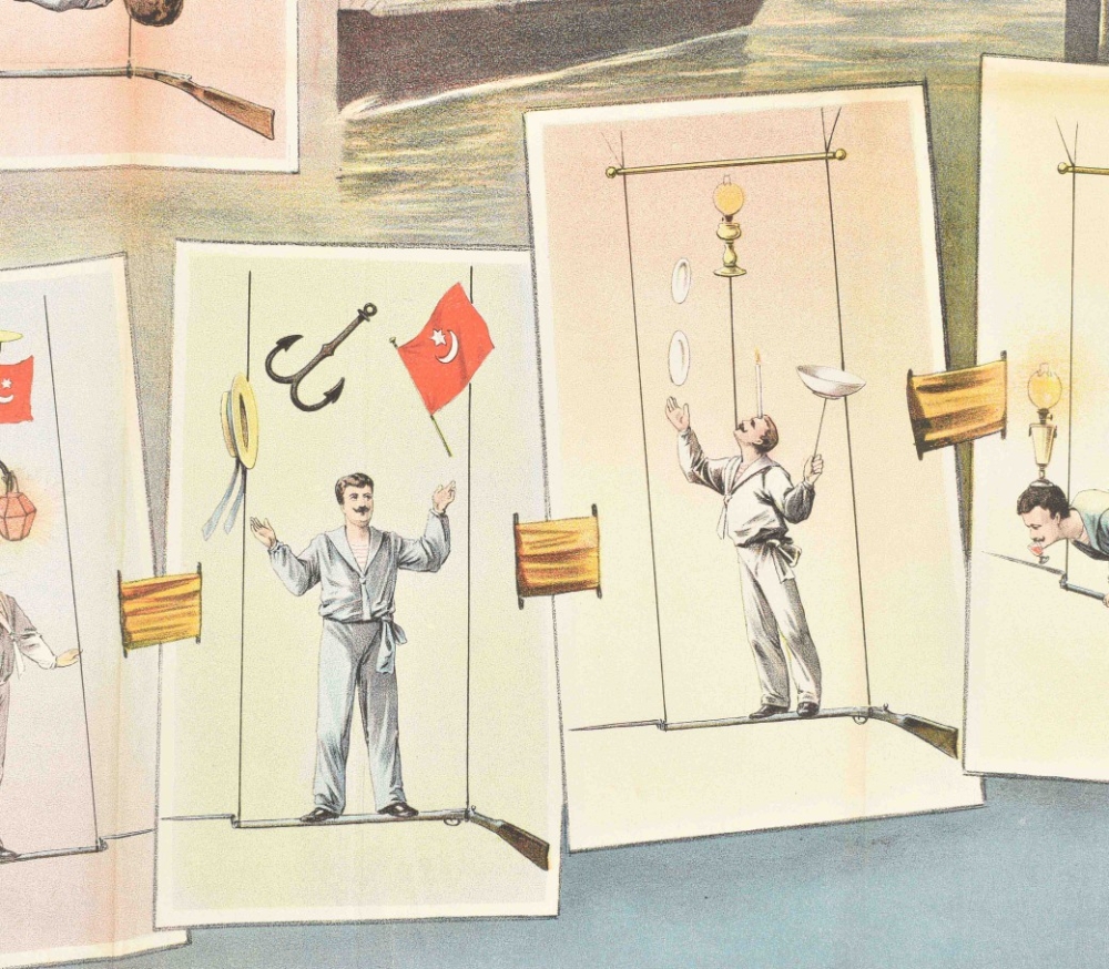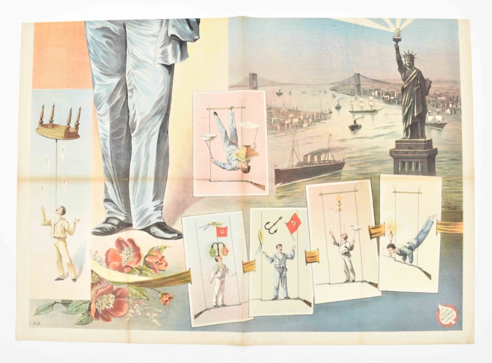 Champion equilibrist of the world. Friedländer, Hamburg, 1891. 2 loose parts, ca. 96 x 68 cm. Lith. no. 940.