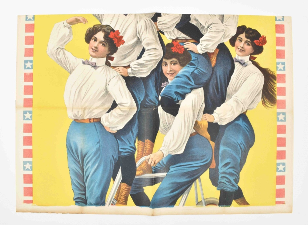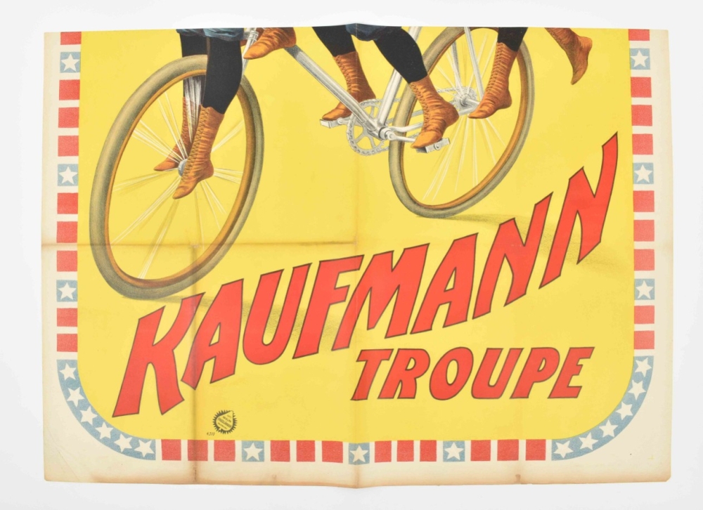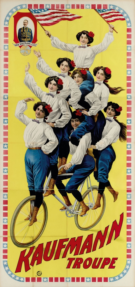 *Nick Kaufmann was the first cyclist to organize an unofficial "world championship" in artistic cycling in 1888. After his own cycling career, the Swiss-American became an impressario who managed several troupes to perform wonderful bicycle acts, including an all-girl group called the Kaufmann's Cycling Beauties, as seen here.