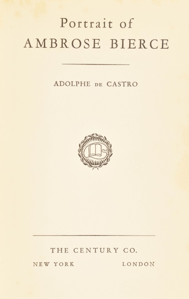 (1) Adolphe de Castro. Portrait of Ambrose Bierce. London & New York, Century, 1929. 1st ed., 1st printing. Early biography w. ills. and rare dust-j., cl.