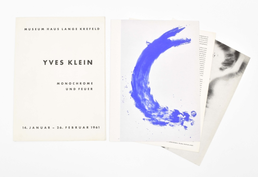 The prints were inserted in the catalogue (added to the lot) published for Klein's exhibition Monochrome und Feuer at Museum Haus Lange, Krefeld 14 January - 26 February 1961. 32 x 23.5 cm, 12 pp. Ills. b/w and colour. Text by Paul Wember. Provenance Henk Peeters, stamped by the Dutch Zero artist on interior of the catalogue's back cover. The prints and catalogue are in mint condition. (total 2)