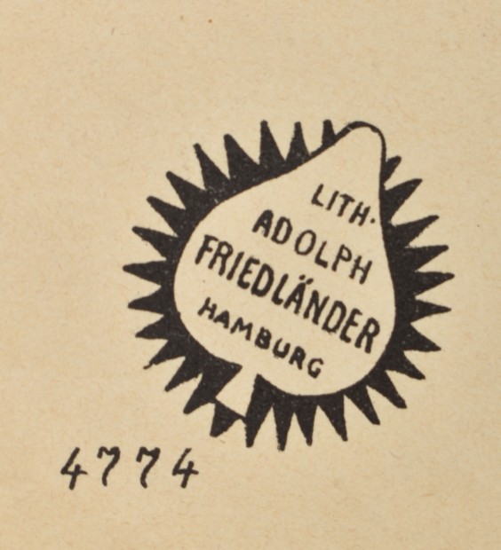 Friedländer, Hamburg, 1909. 95 x 71 cm. Lith. no. 4774. This is the uncol. b/w version.