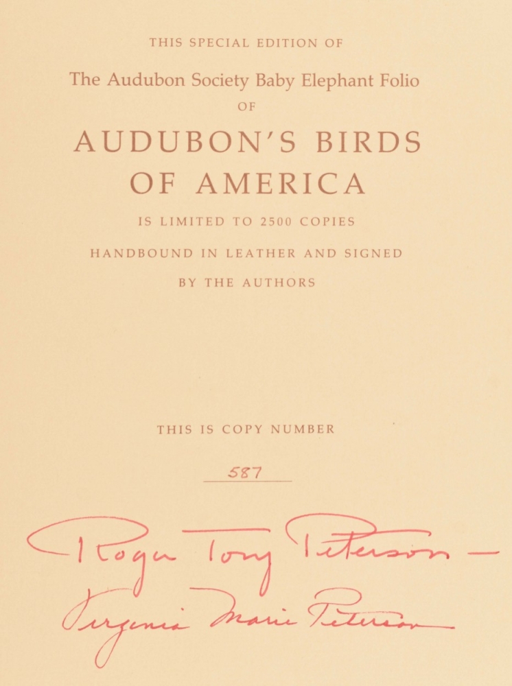 The Audubon Society Baby Elephant Folio (38.5 x 31 cm). Abbeville Press, New York, 1981. No. 587 of 2500 signed copies, hand-bound in (gilt) leather.
