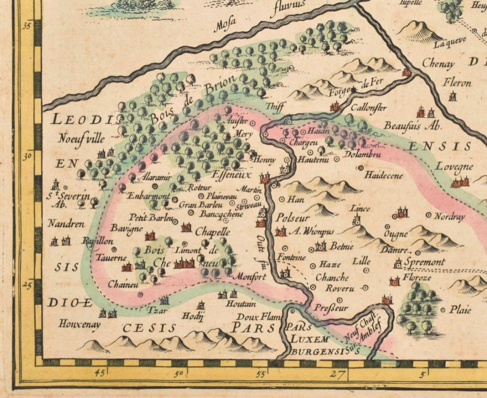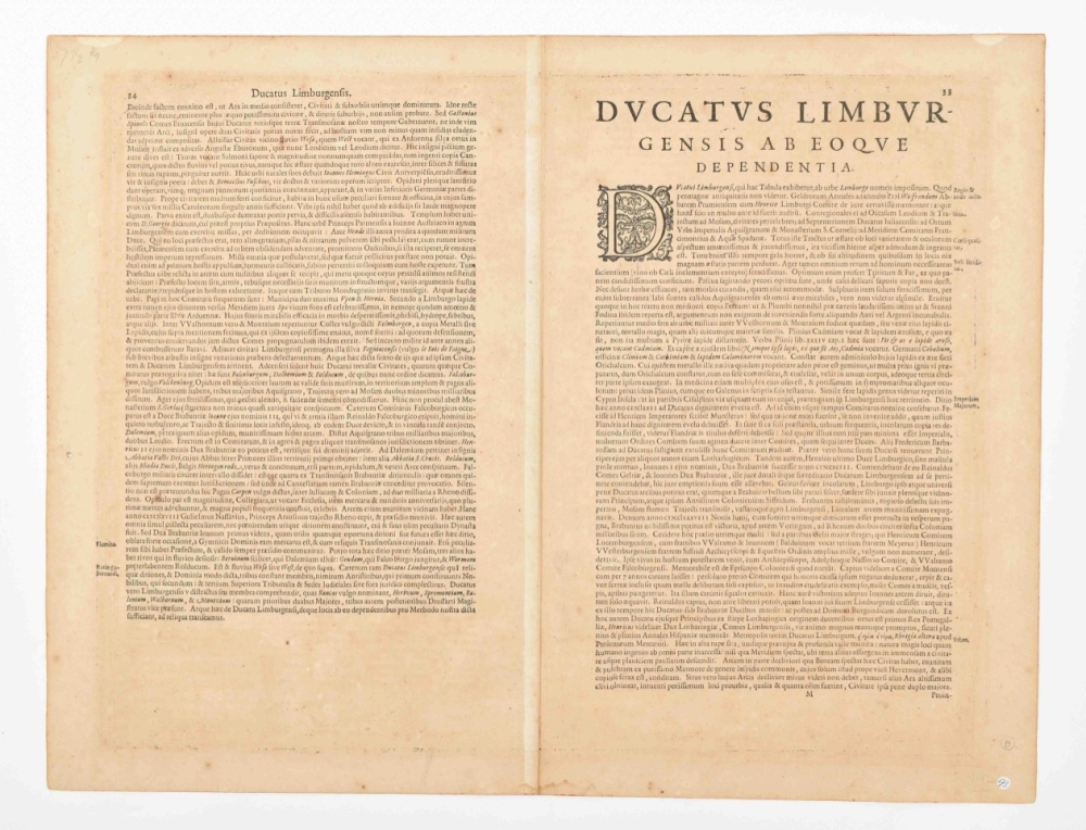 Paper browned w. a few thin spots and waterst., otherwise a good copy of this early Limburg map.