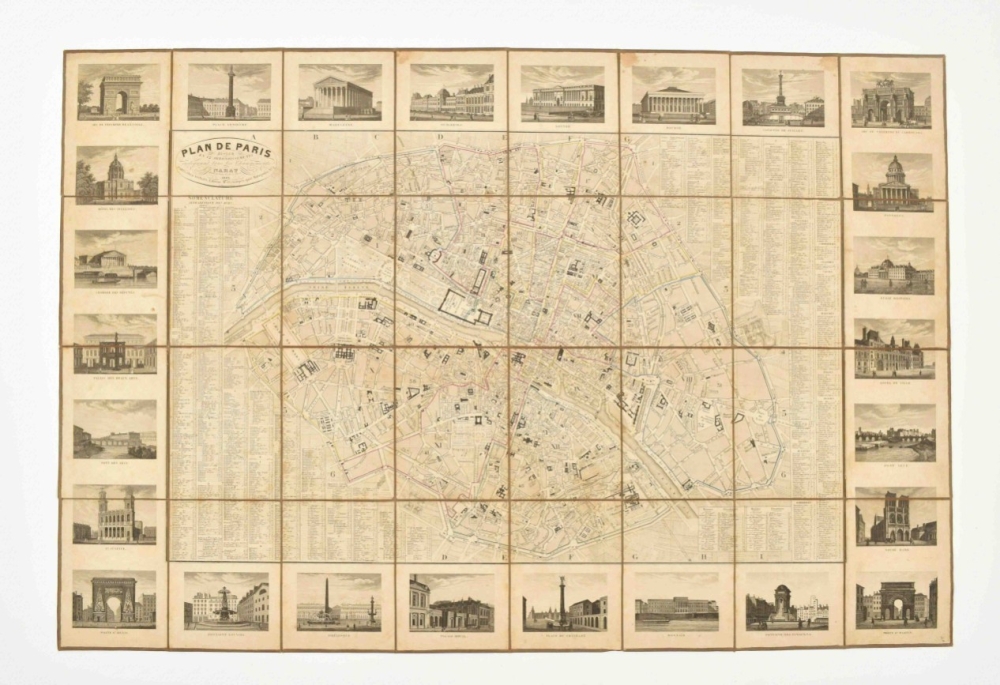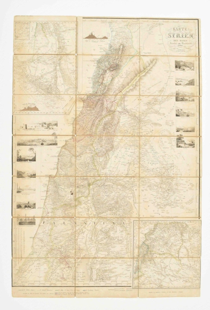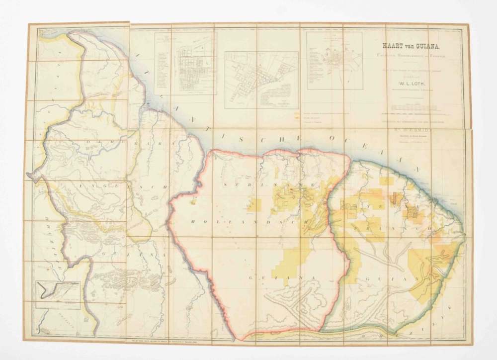 (2) W.H. Loth. Kaart van Guiana, Engelsch, Nerderlandsch en Fransch. Amst., J.H. de Bussy, 1889. 32 segments, col. lithogr. (3) Plan de Paris. Narat. Paris, Danlot, 1843. 32 segments w. plan, street list and 28 ills. (4) Karte von Syrien. H. Berghaus. Verlag Justus Perthes. Gotha, 1835. 21 segments w. inset maps, mountain profiles and 12 sm. ills. (total 4)