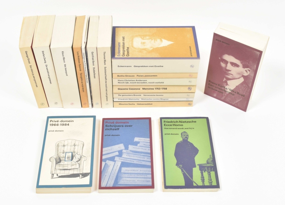 Amst., Arbeiderspers, ca. 1976-2000. Collection of 18 vols. incl. (1) Franz Kafka/Max Brod. Een vriendschap in brieven. 1993. (2) Eckermann. Gesprekken met Goethe. 1990. -and 16 more, mainly on and by German authors.