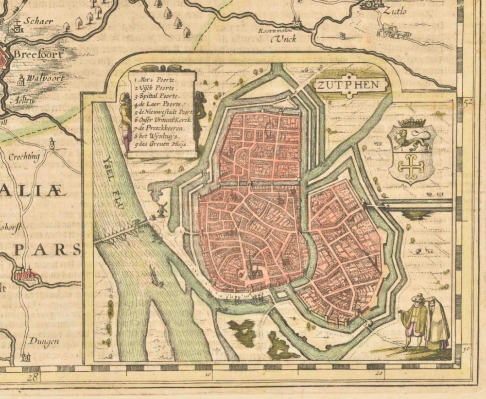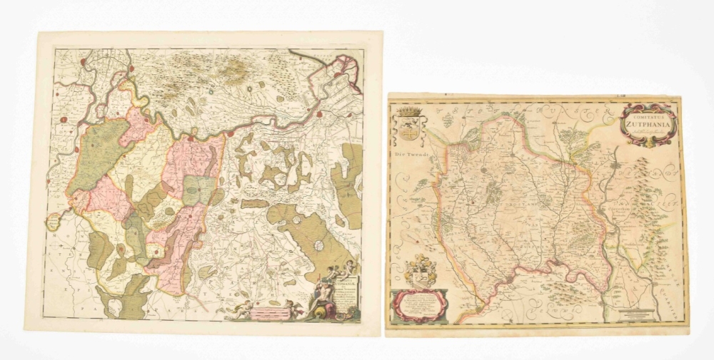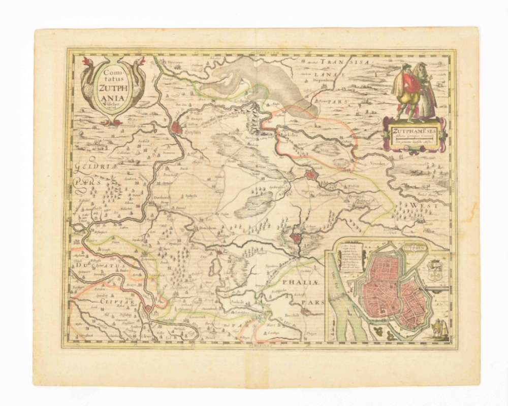 (1) Comitatus Zutphania. Amst., C.J. Visscher, 1634. Folio. Inset town plan, col., verso Dutch text.