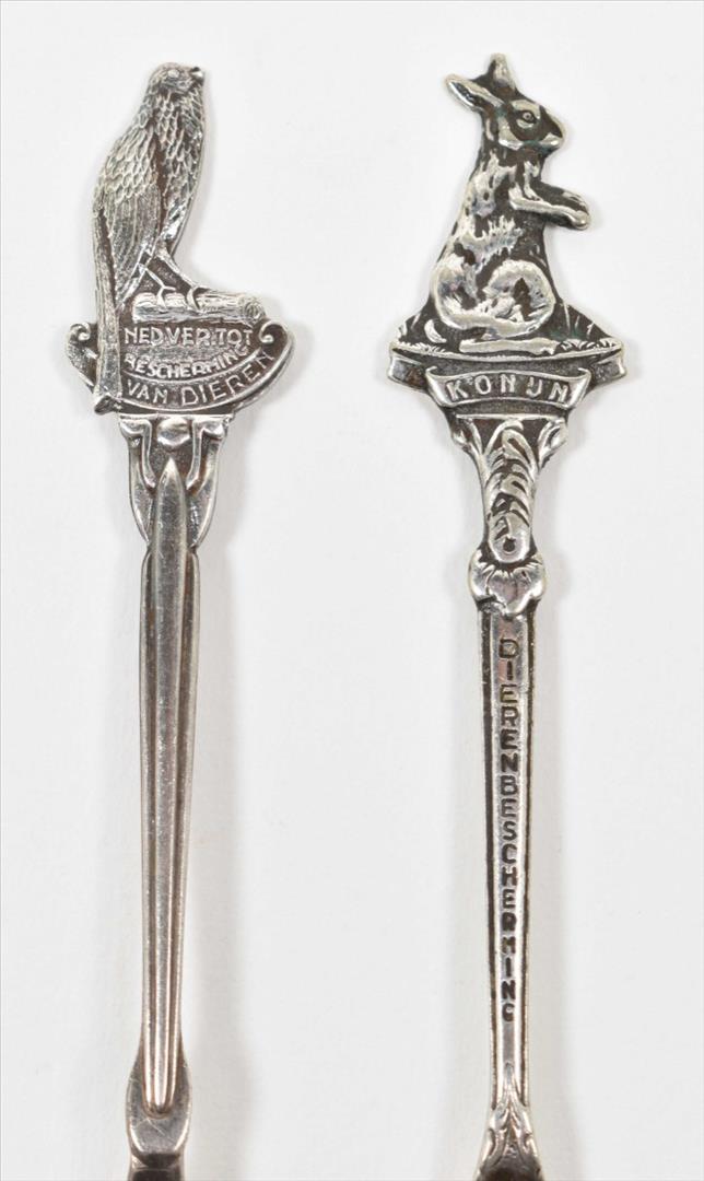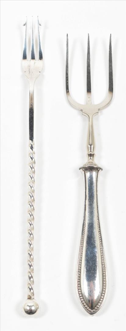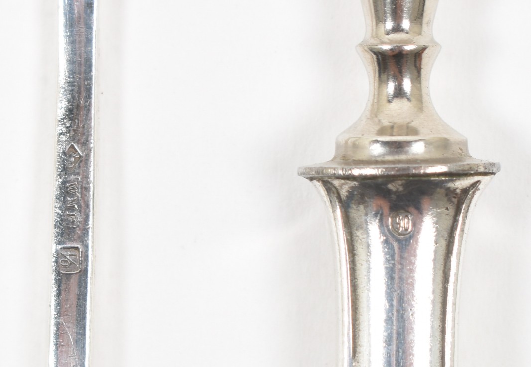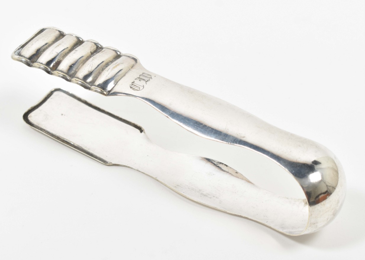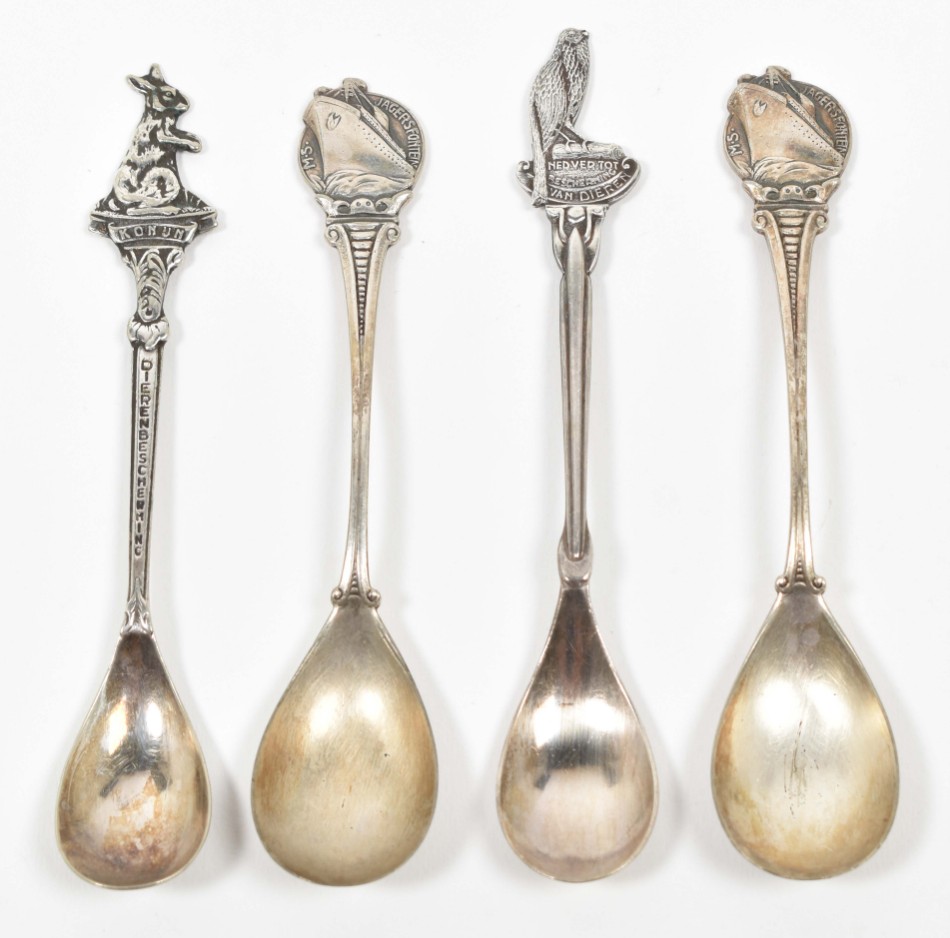 Incl.: silver plated spoons; knives; forks; bread tongs; a pair of scissors; a magnifying glass on a chain; a pair of foldable eyeglasses marked "835" between the lenses; 3 sm. mother-of-pearl spoons; and a sm. brass compass.