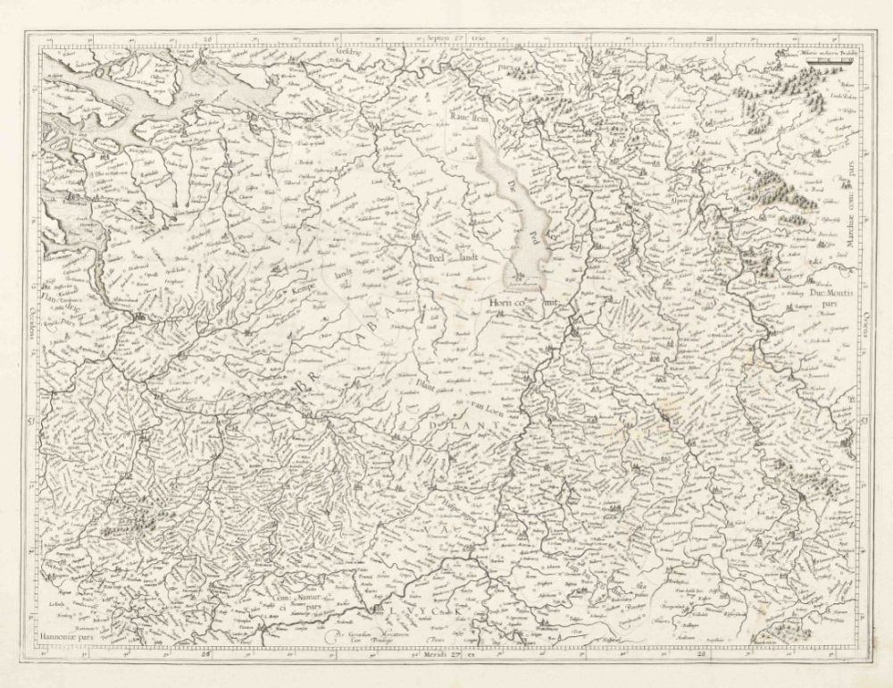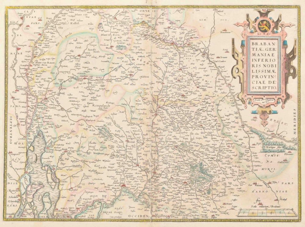 Inferioris (...) Descriptio. Antwerp, Abraham Ortelius, ca. 1600. 37 x 50.5 cm. Verso Brabantia, Latin text, col. faded. Repaired on center fold w. min. loss of text, sturdy paper.