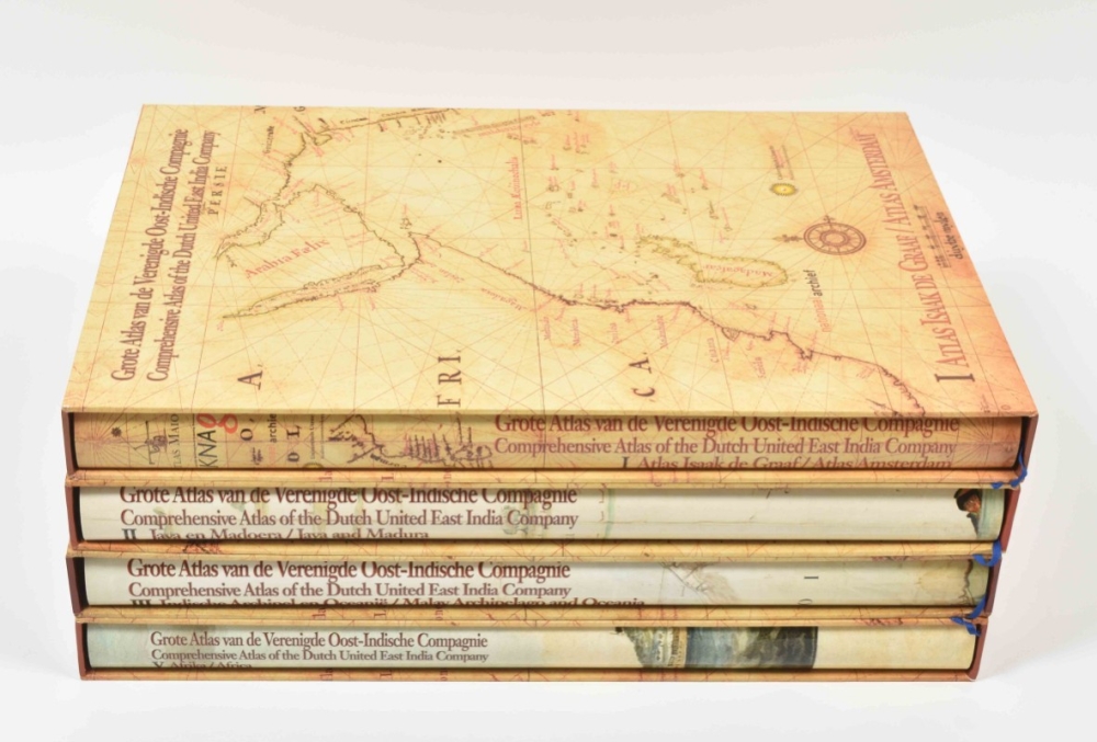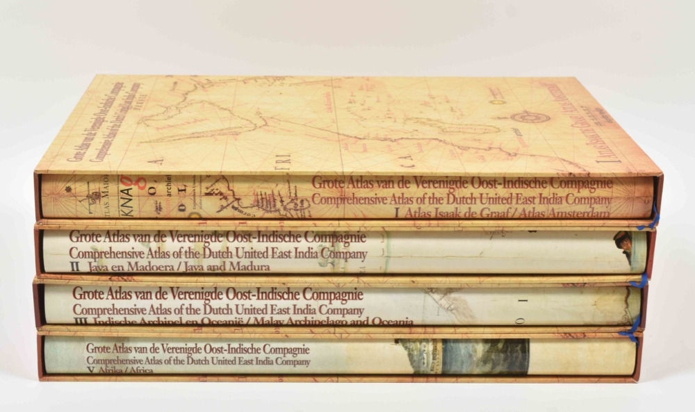 Koninklijk Nederlands Aardrijkskundig Genootschap. Voorburg, Asia Maior, 2006-2010. Vol. I, II, III, V. Folio. Hc in slipcase. 2 vols. of the set of 6, in fine condition.
