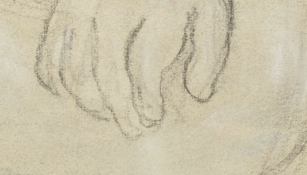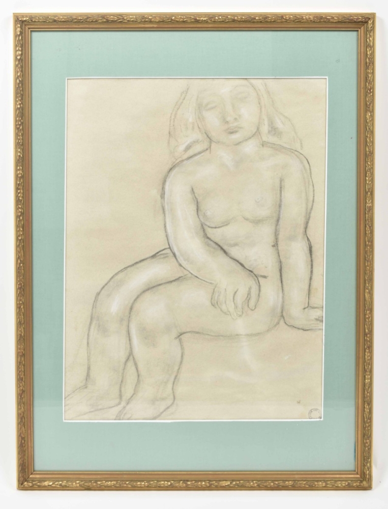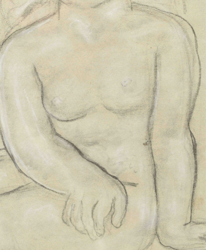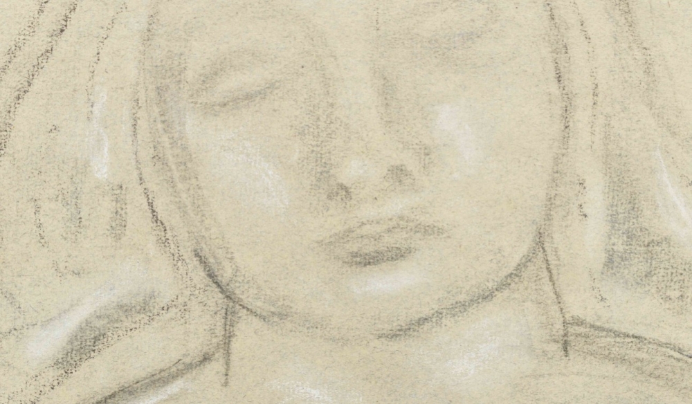 Drawing, white, black chalk, 62 x 45.5 cm, with stamp "Atelier Leo Gestel 1941" in lower right corner, on grey paper. In passe-partout under glass.