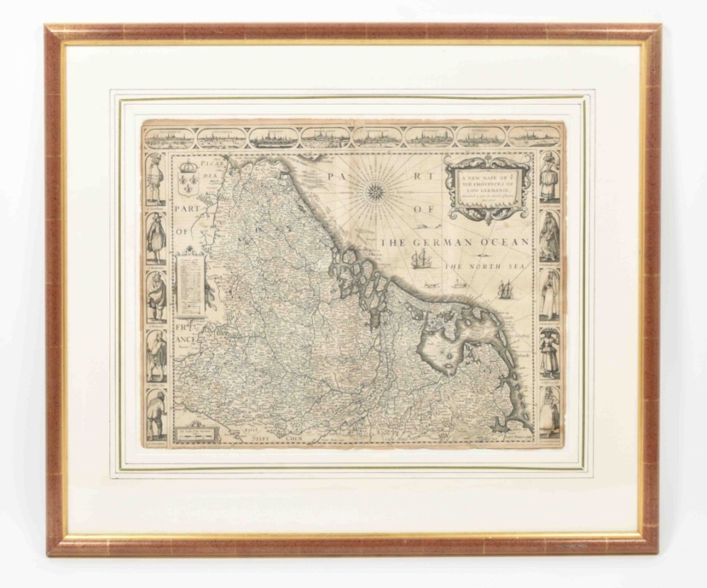 of Low Germanie, mended a new in manie places. [London, G. Humble], ca. 1626. 41.5 x 54 cm. Framed w. passe-partout under glass, 66 x 78 cm. Cropped borders. From: A Prospect of the Most Famous Parts of the World.