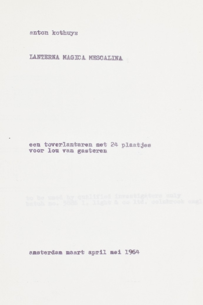 Eight miscell. titles/ items: (1) Anton Kothuys. Lanterna magica mescalina