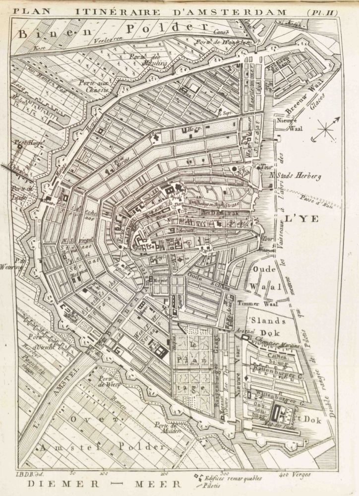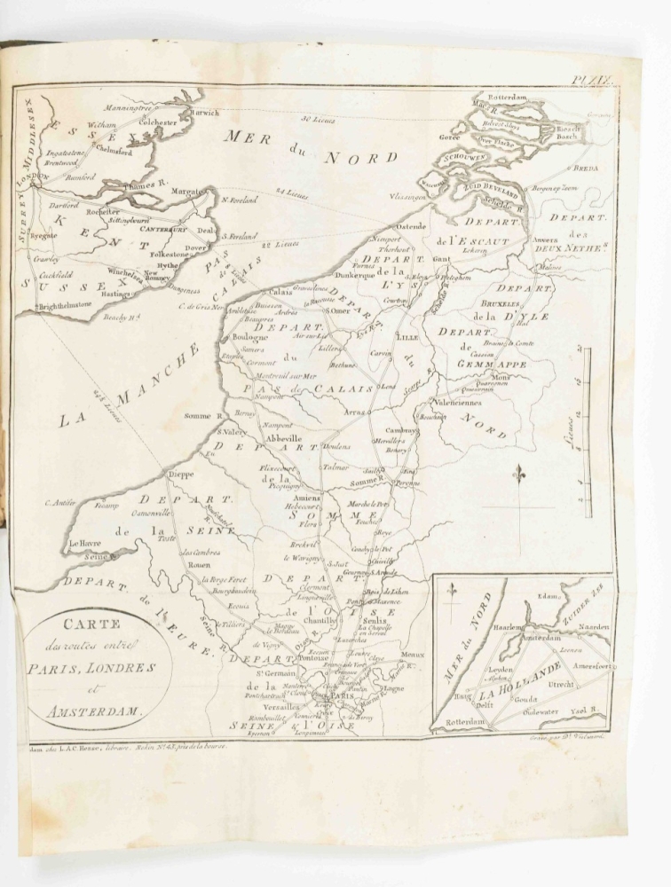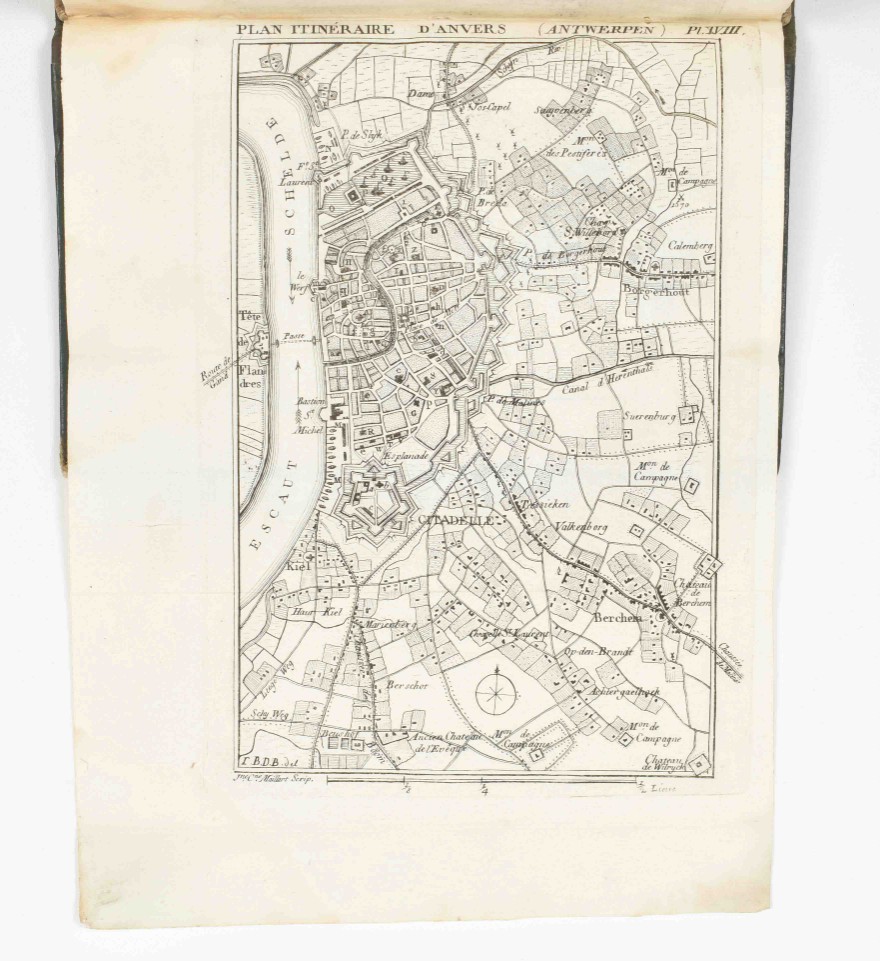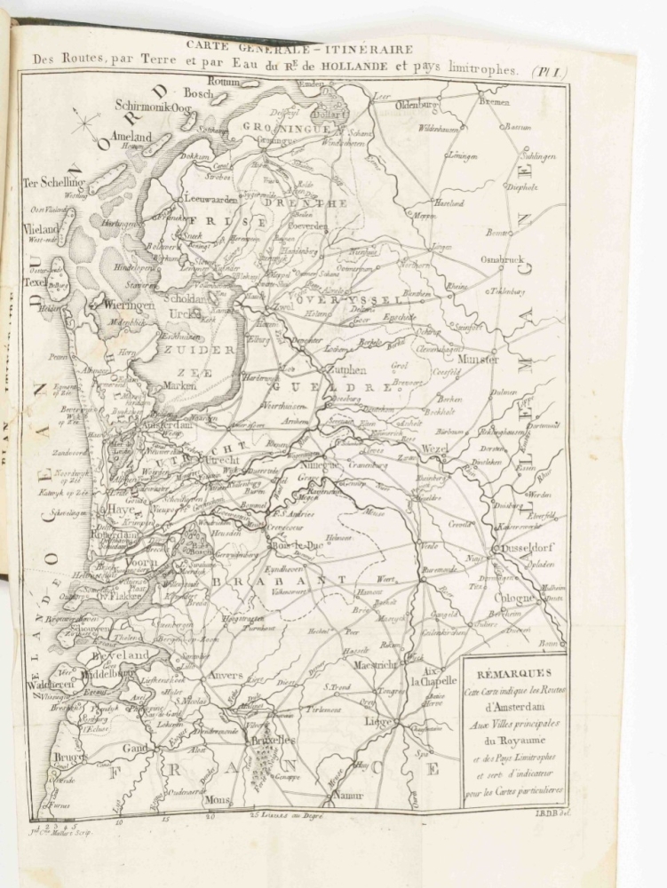 Ouvrage indispensable pour chacun qui voyage dans ce pays. Seconde édition. Orné d'un atlas de 19 cartes. Amst. etc., L.A.C. Hesse, n.d. (1807). (2),8,16,218,(1) p. 12mo. Contemp. gilt hleather w. morocco letterp., 19 fold. engr. maps and plans.