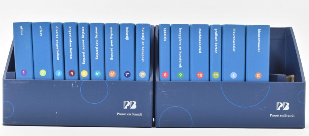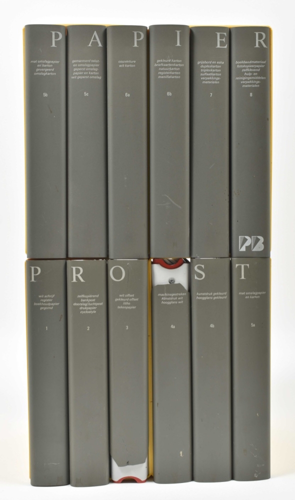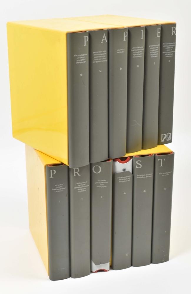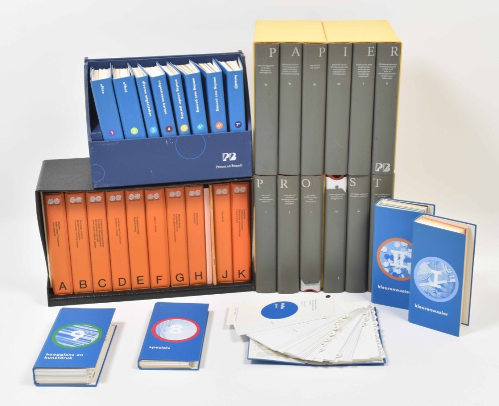 With: Proost en Brandt Paper sample collections from the 1980s, each in orig. case, complete as issued. (total 3 in 5 cases)