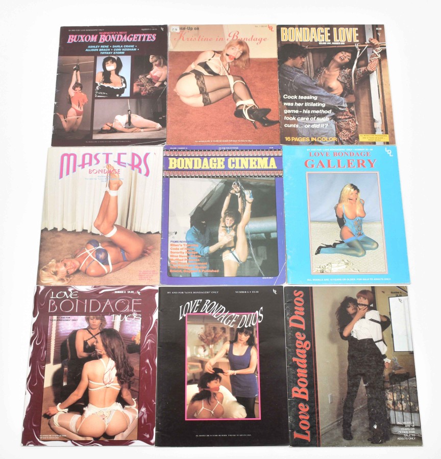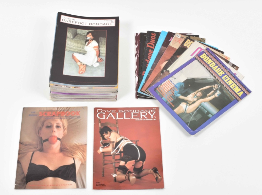 By and for "Love Bondagers" only. 13 vols. from the 1990s Added: 37 similar magazines, incl. a.o.: Tied & Tickled; Scrapbook; Bondage Love; Mistress Quarterly; Barefoot Bondage; and The Judith Wilson bondage photo book.