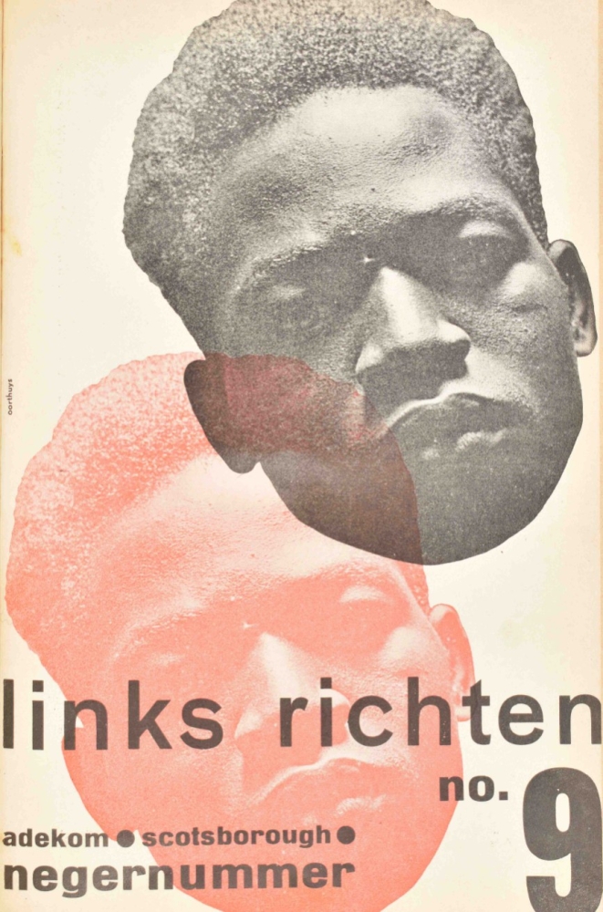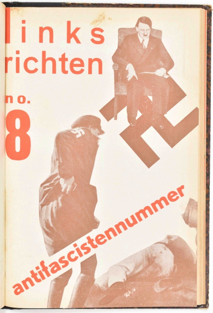 Arbeiders-Schrijvers-Collectief "Links Richten", Amsterdam, 1932-1933. Complete series, orig. photomontage wrappers by Paul Schuitema (no. 1-4, 5/6 and 11/12. No. 9 by Cas Oorthuys (1908-1975). Large 8vo. Bound together in half cloth, marbled boards, spine w. title vignette.