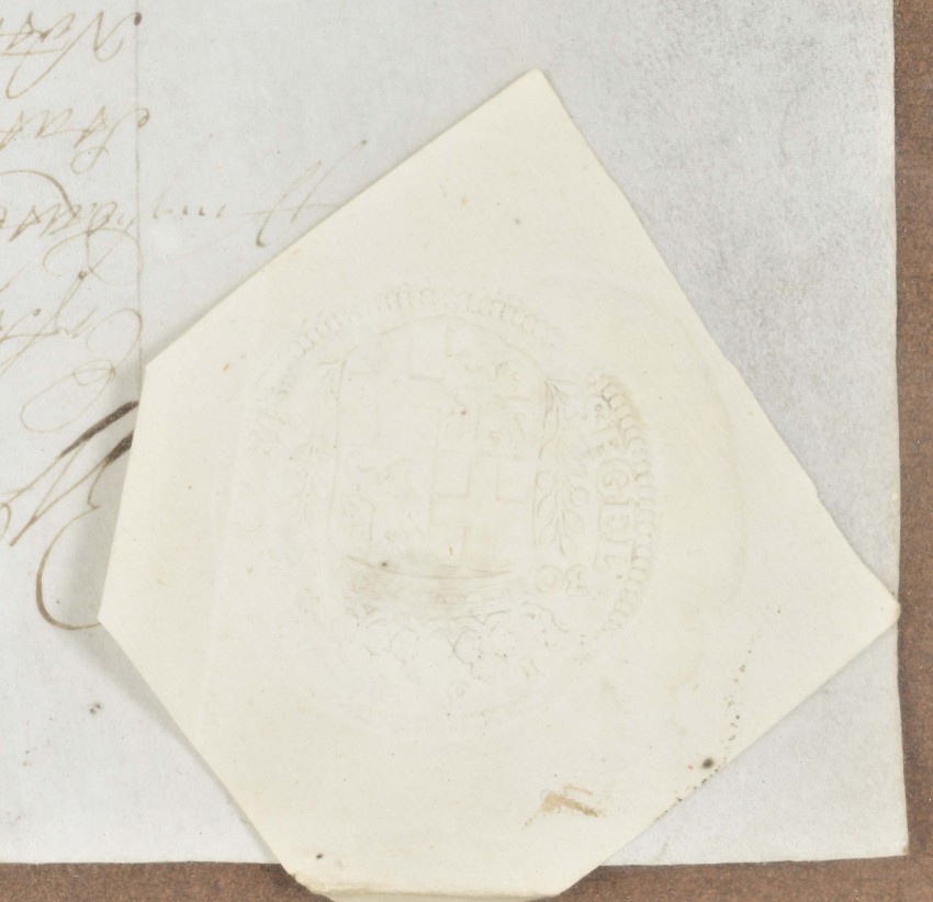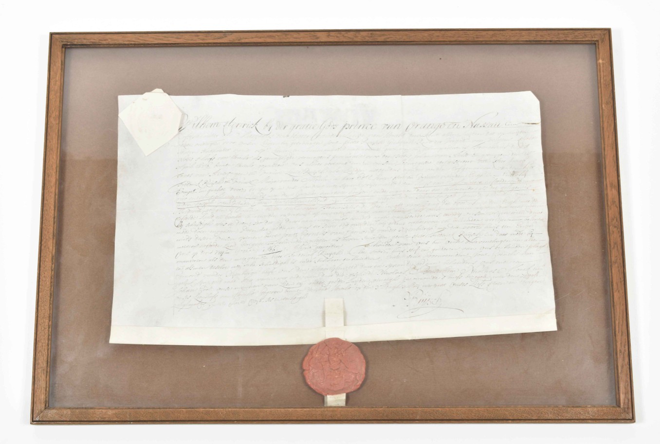 Manuscript bill of enfeoffment on fold. vellum, 29 x 49 cm, dated May 3rd, 1686, signed by Pieter Ruijsch, with paper tax seal attached on upper left corner and w. attached wax seal, framed.