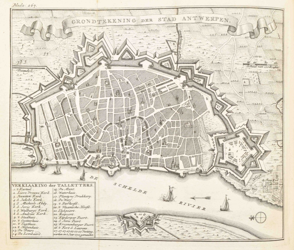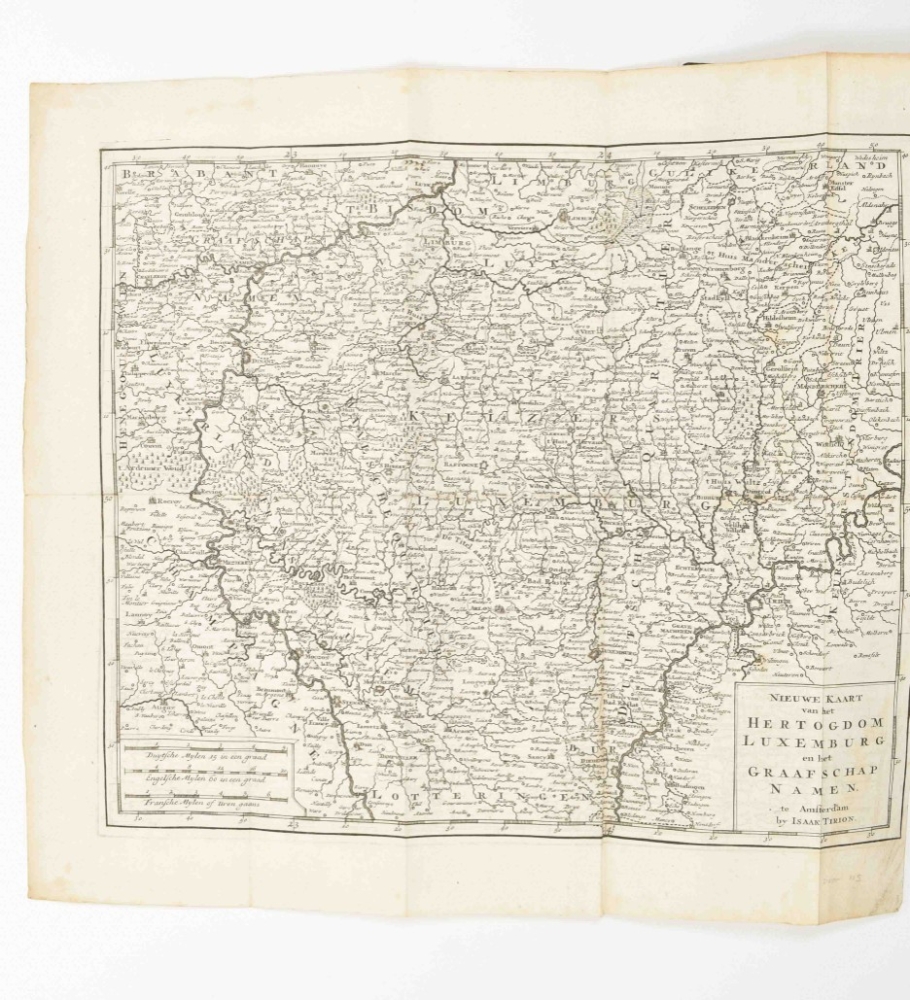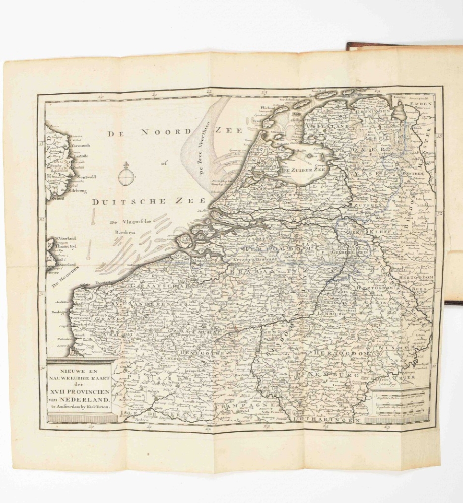 of Tegenwoordige Staat van alle volkeren (...) Xde deel. Behelzende eene beschryving van den tegenwoordigen staat der Oostenryksche, Fransche en Pruisische Nederlanden. Amst., Isaak Tirion, 1738. Rebound w. orig. spine, frontisp., title w. sm. vignette, 15 copper engr. w. maps, plans, views, a portrait and a procession.