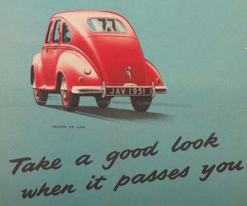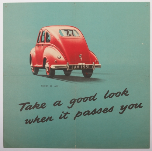 "Take a good look when it passes you". 40,5x40,5 folded twice. Good copy.