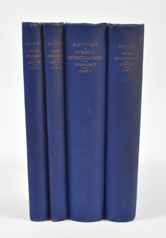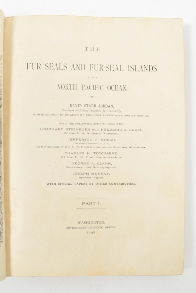 David Starr Jordan (and associates) and special papers by other contributors. Washington, Government Printing Office. 4 vols. Approx. 1600 p. 4to. Blue percaline boards, num. ills., photos, maps and indexes.