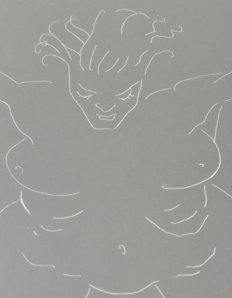 Etching/aquatint in black and white, 65 x 50 cm. Framed with passe-partout, 73 x 90 cm.