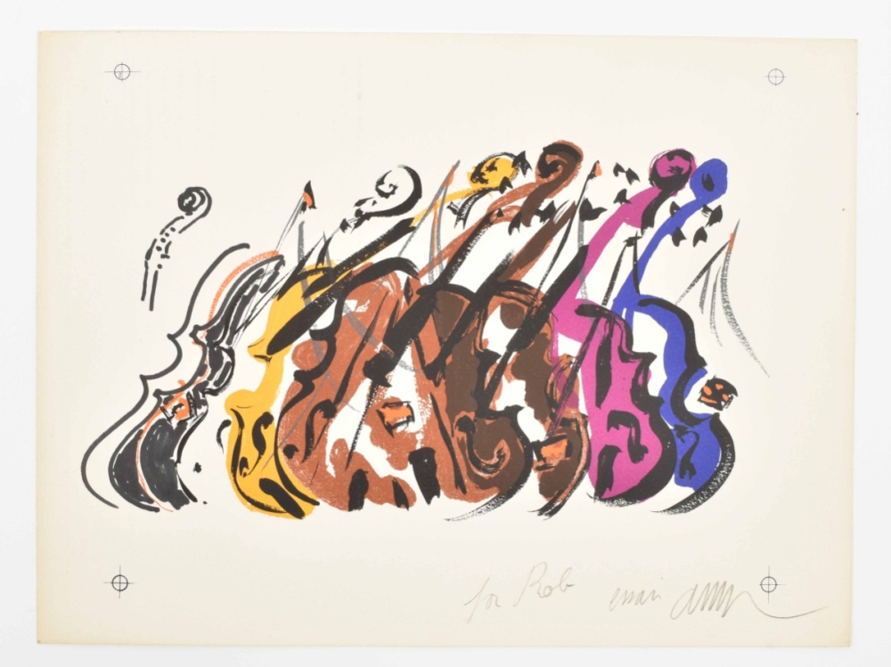 colour print on wove paper, 30 x 40 cm. Signed Arman in pencil in lower right corner, dedicated 'for Rob'. Undated. Fine copy.
