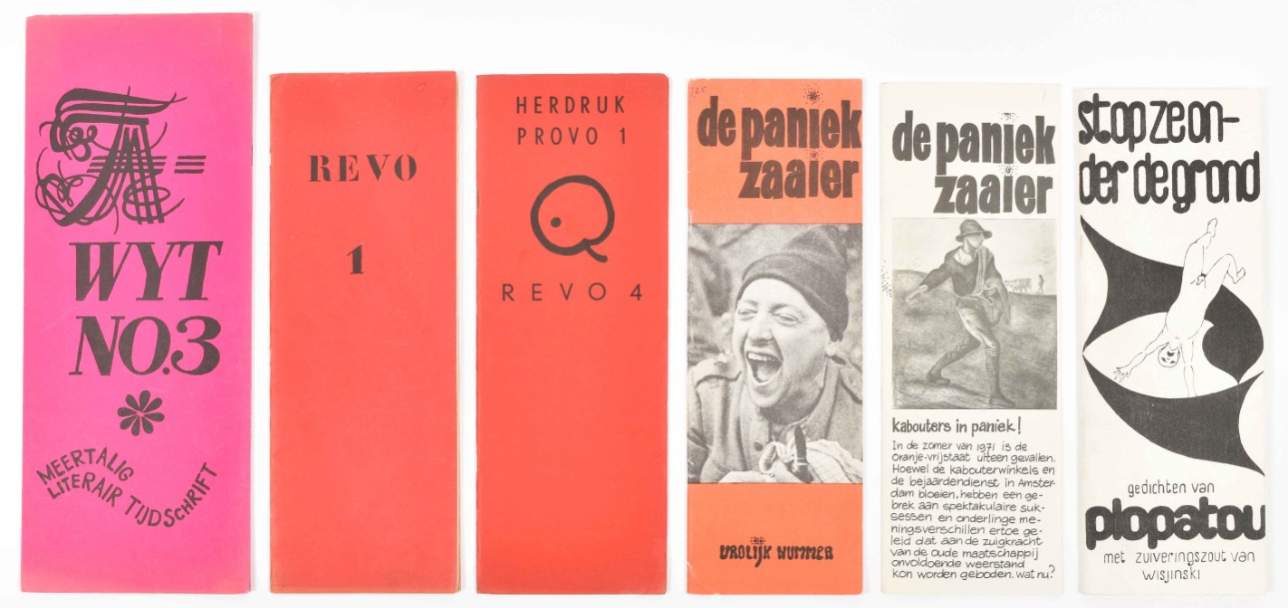 Brussel, maart 1966. With: (2) [idem] Vol. 4 (3) Wyt No.3. Meertalig literair tijdschrift. Ed. F.S. Sixma Heemstra, S. Abma, ca. 1970. (4) Provokatie nr. 11. (5) De Paniekzaaier no. 1 and 4, 1971. (6) Stop ze onder de grond. Gedichten van Plopatou met zuiveringszout van Wisjinski. 64 pp. Signed copy. -and 20 similar or related magazine and book editions