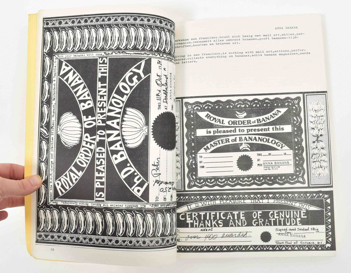 Contains mail art contributions from a wide variety of artists including Woody Van Amen, Anna Banana, Robert Barry, Ben Vautier, Joseph Beuys, Stanley Brouwn, Hans Peter Feldmann, Robert Filliou, Ken Friedman, Sigurdur Gudmundsson, Allan Kaprow, Ko de Jonge, Ulay, Soll Lewitt, Raul Marroquin, Pieter Mol, Arnulf Rainer, Dieter Roth, Allen Ruppersberg, Edward Ruscha, Robert Smithson, Jiri Valoch, Edgardo Antonio Vigo, Wolf Vostell, Emmett Williams and others. Soiling and minor creasing on front sheet, else a fine copy.