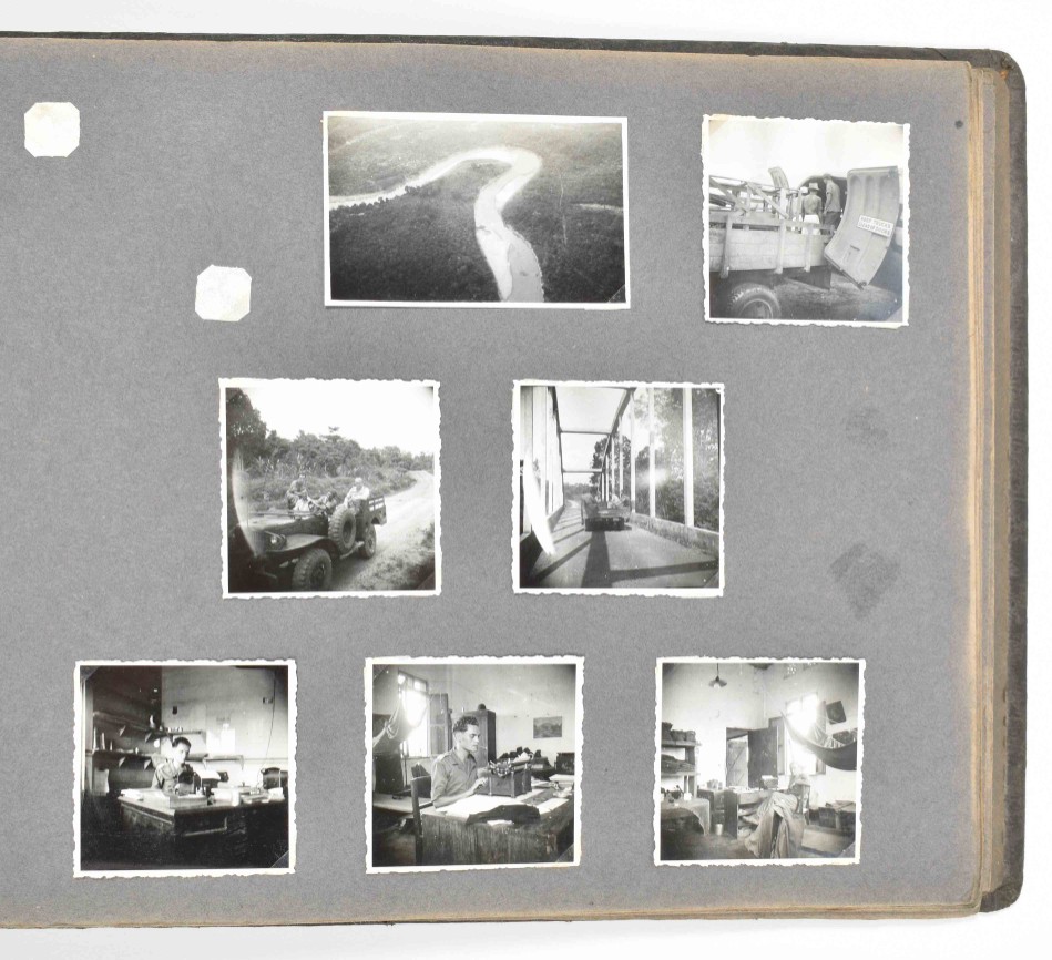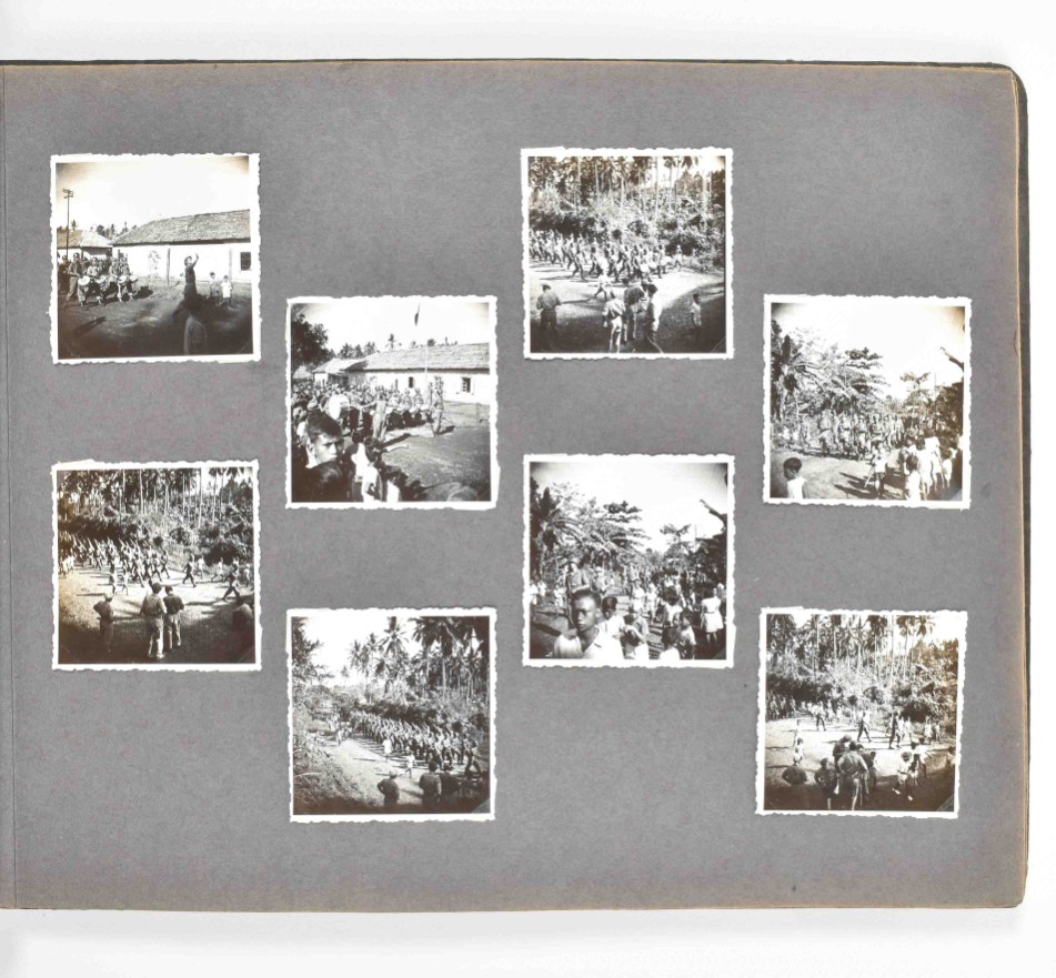 Ca. 1946-1949. Most measuring 5.5 x 5.5 cm. Depicting scenes from daily life as seen by a Dutch soldier during the so-called "Politionele acties", loosely inserted in contemp. album, obl. folio.