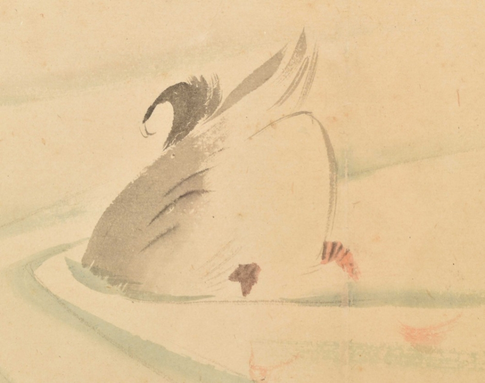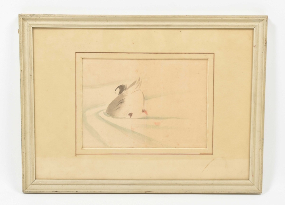 A few wormholes, some sl. foxing. -and a watercol. of a duck, also framed under passe-partout. (total 2)