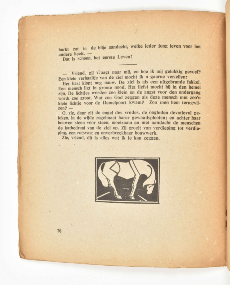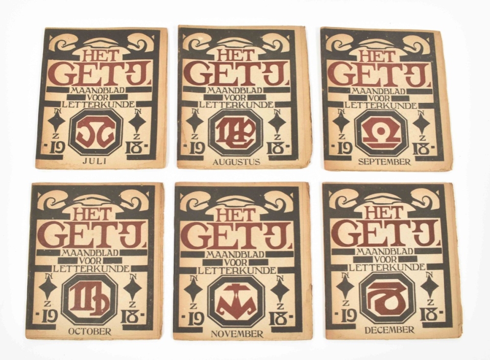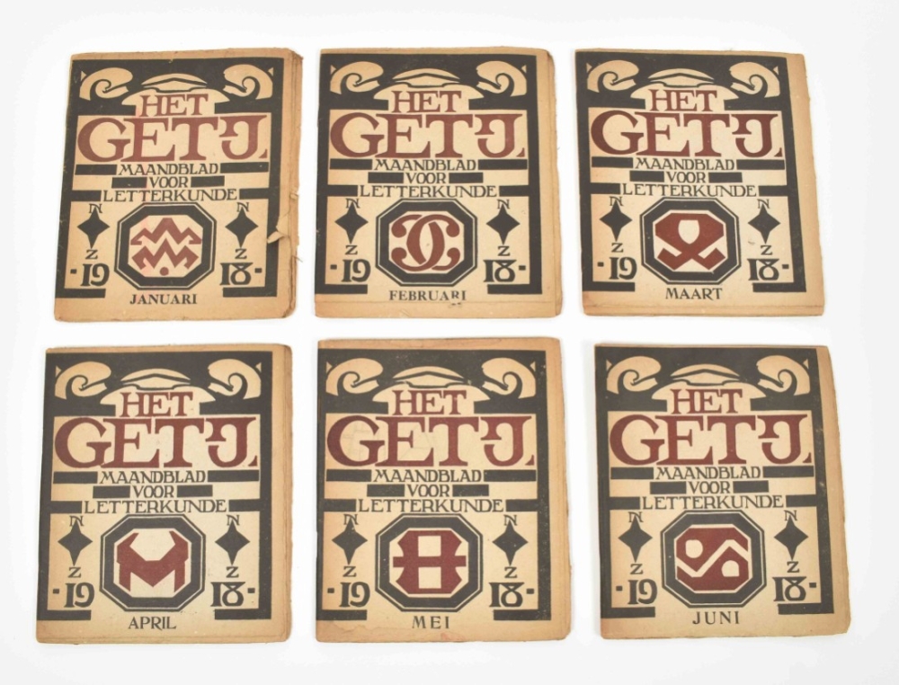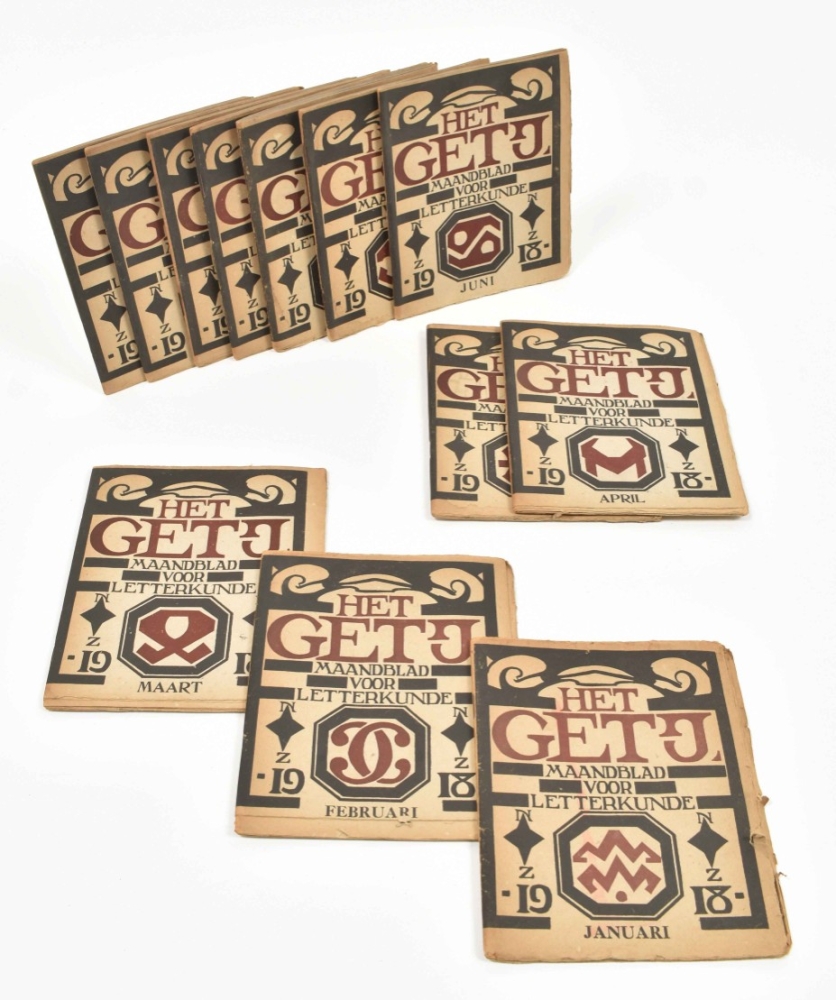 Amst., De Hooge Brug/ Vereeniging Kring voor Letterkunde, 1918, Jan-Dec. Sm. 4to. Orig. paper woodcut wr. and woodcut vignettes in text.